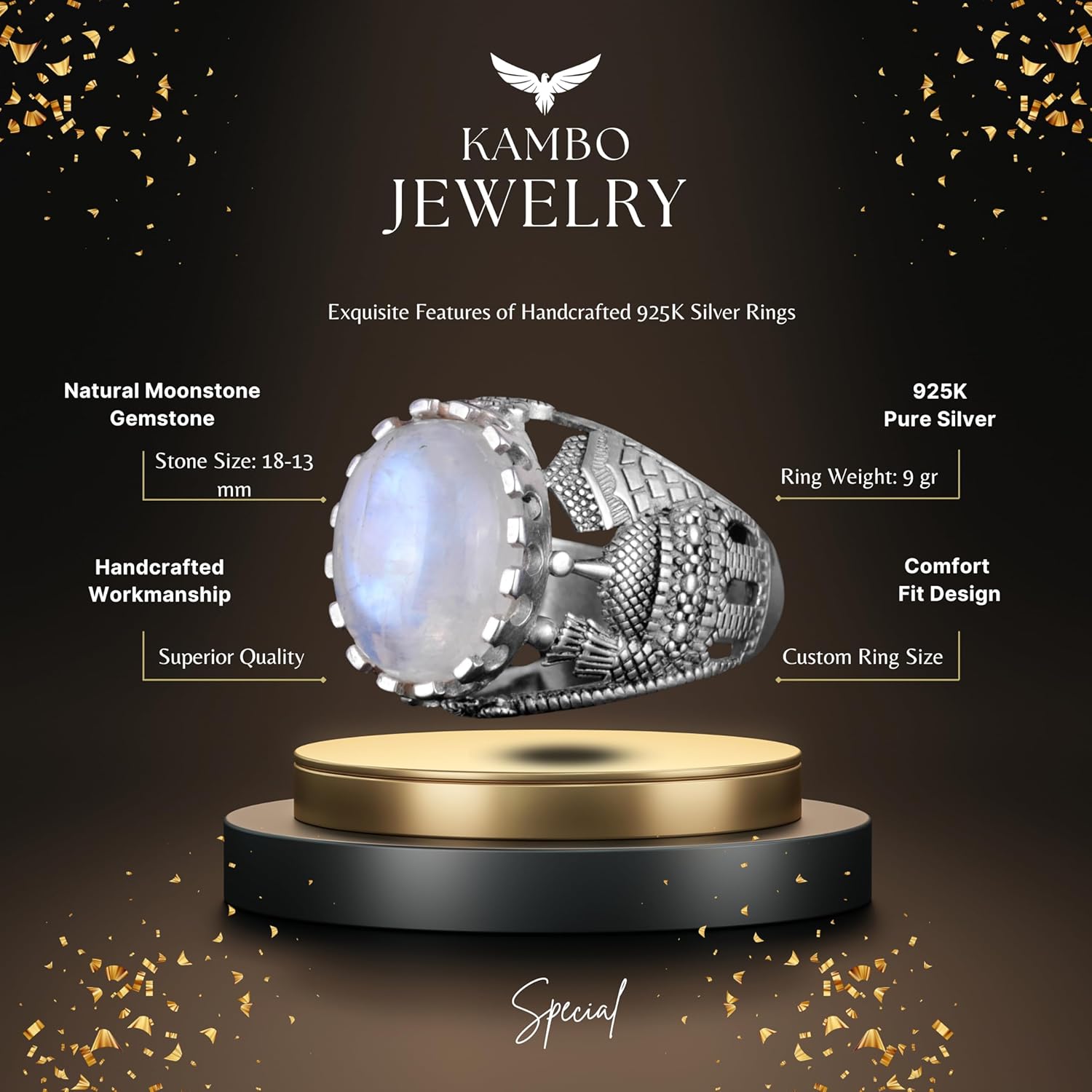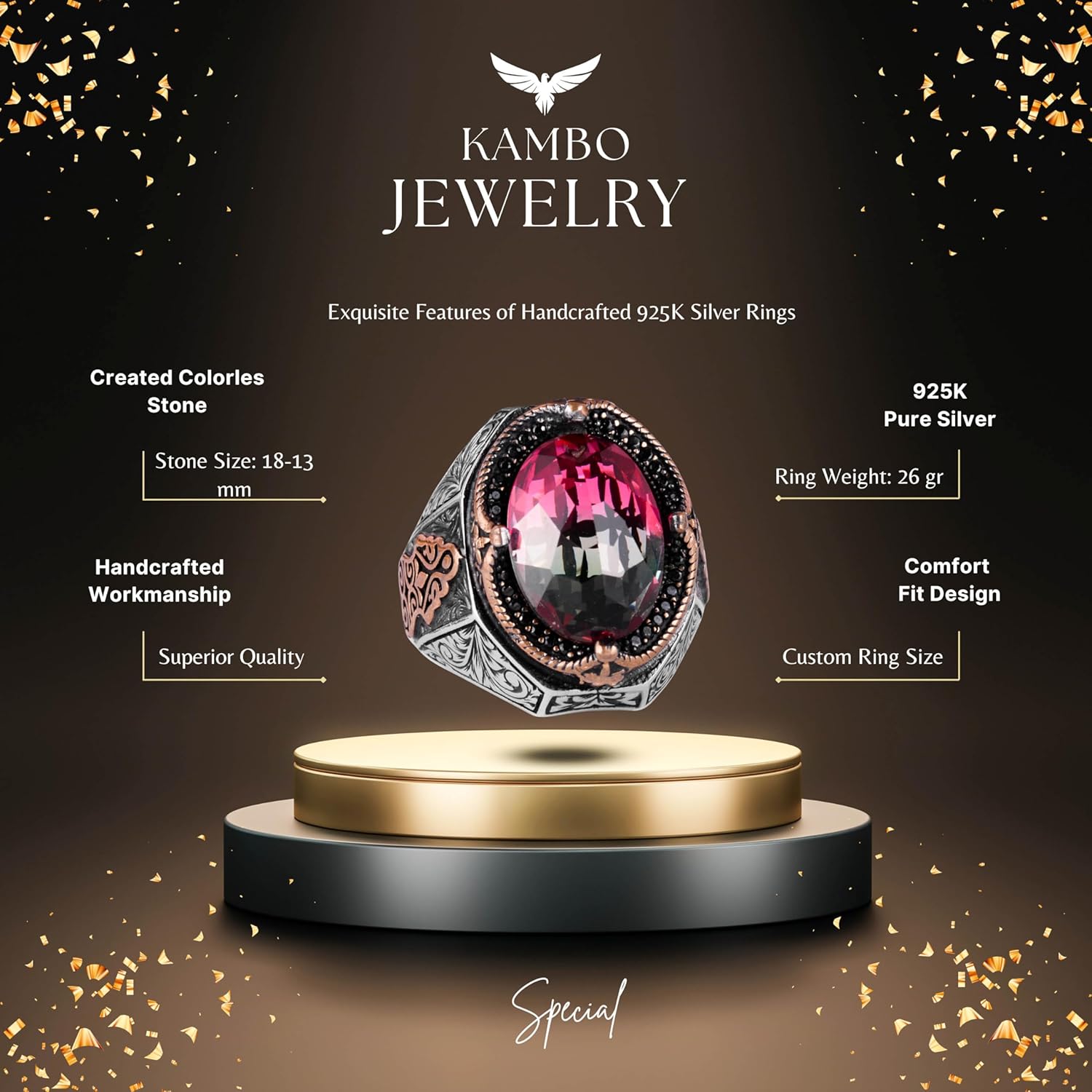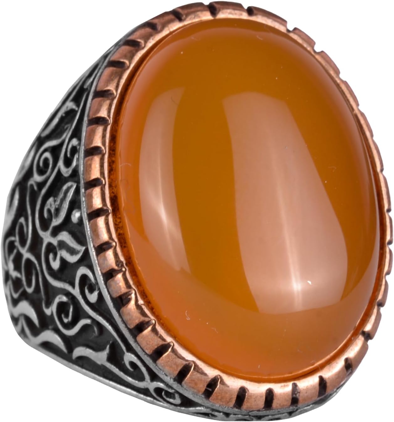 925 Ayar Sert Gümüş Yüzük, Doğal Taş Yüzük, Büyük Yüzük, Tasarım Gümüş Erkek Yüzüğü (Sarı Ağaç)