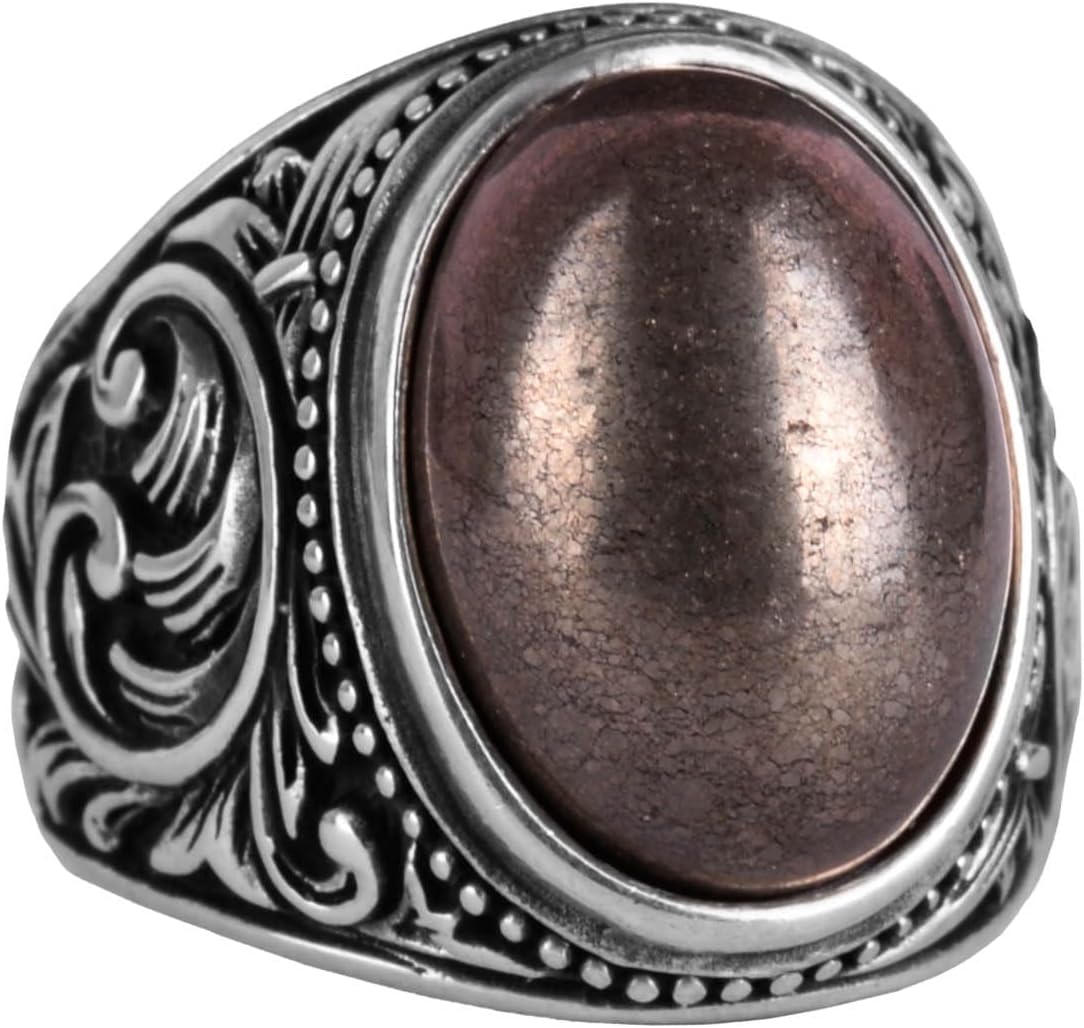 925 Ayar Sert Gümüş Erkek Yüzük, El Yapımı Doğal Pirit Taşlı Yüzük - Refah Manifestasyonu Tasarımı