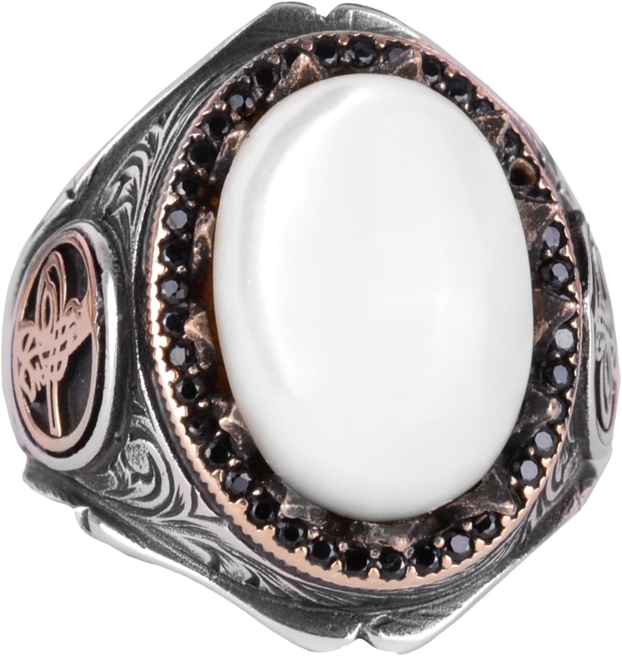 925K Katı Gümüş Erkek Yüzük, Doğal Sedef Taşla - El Yapımı Şıklık