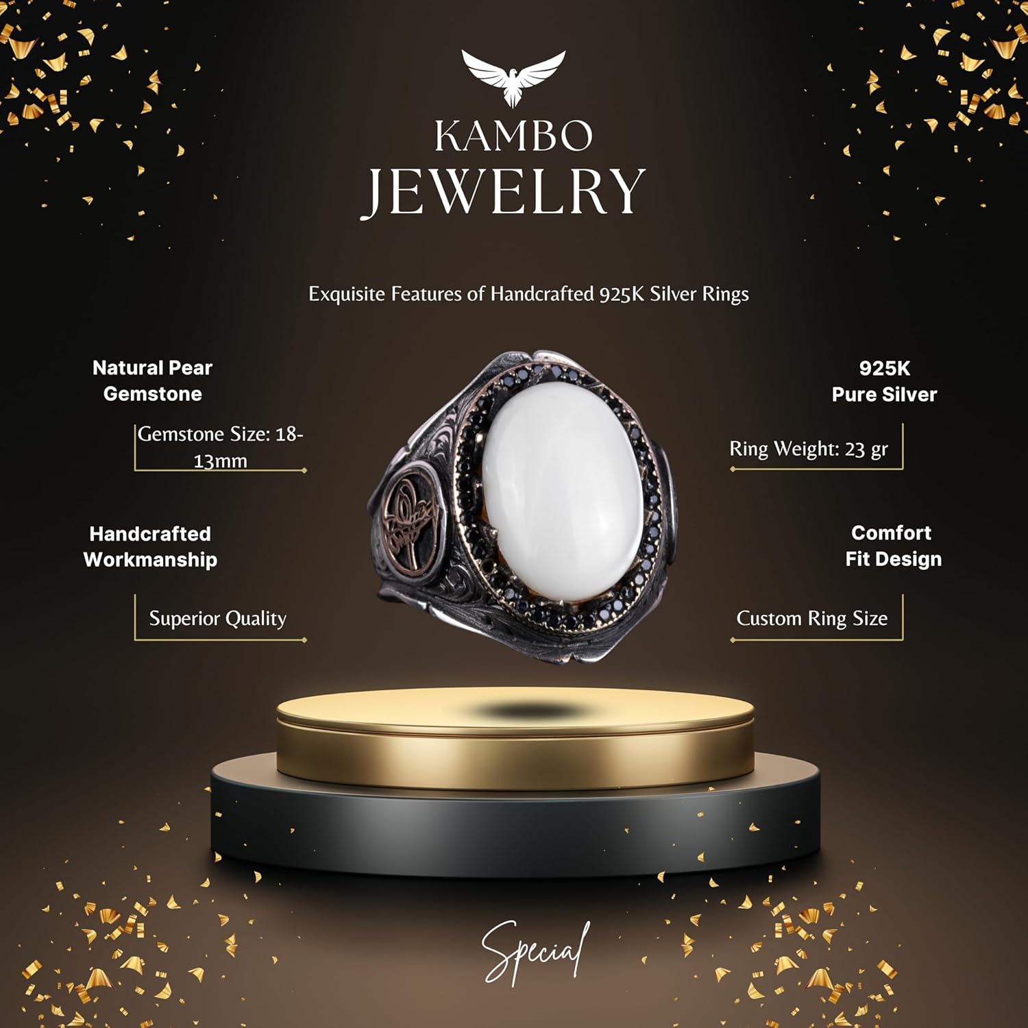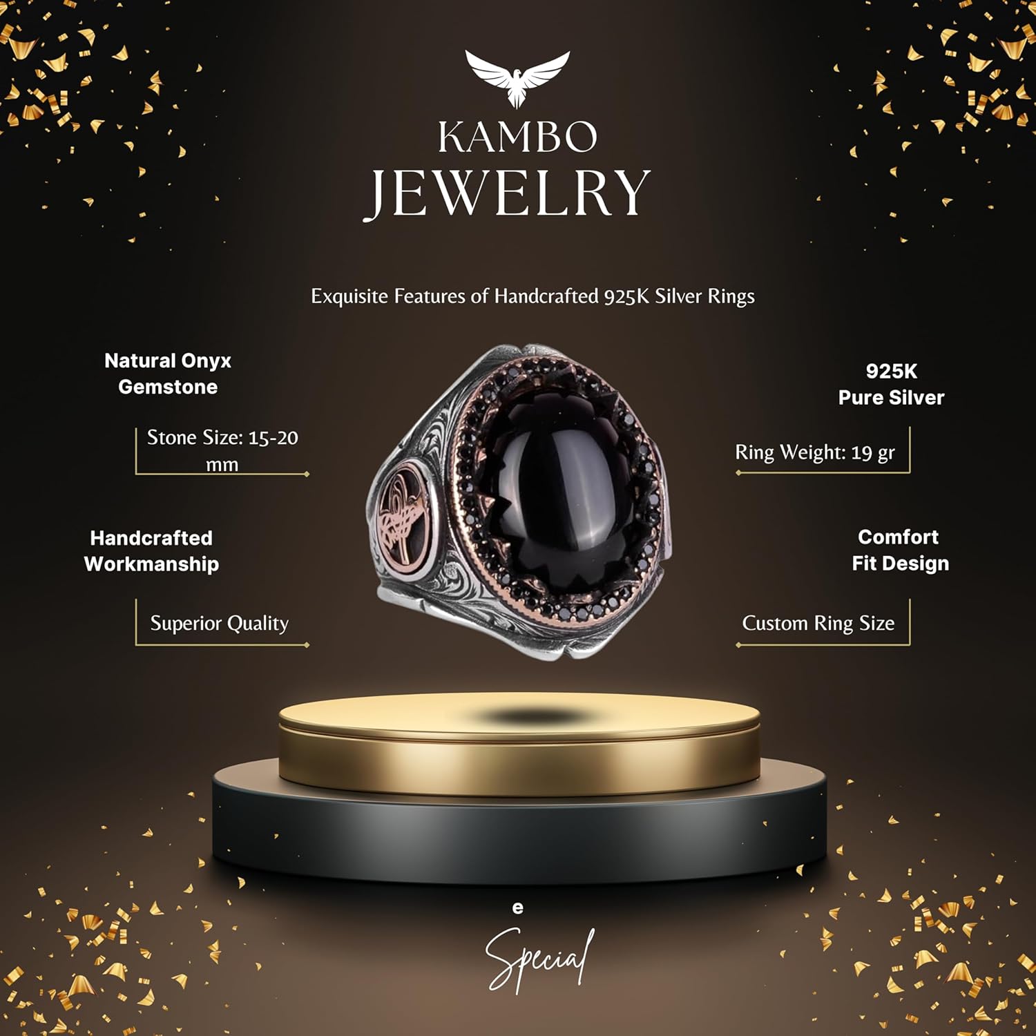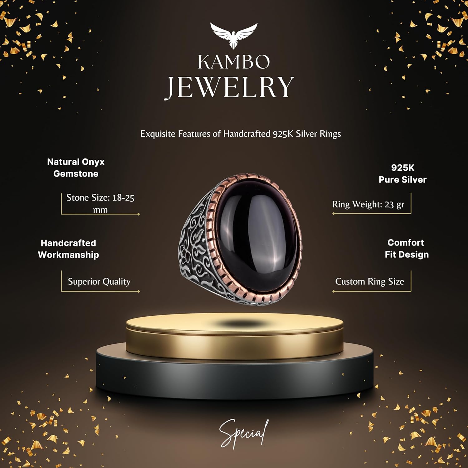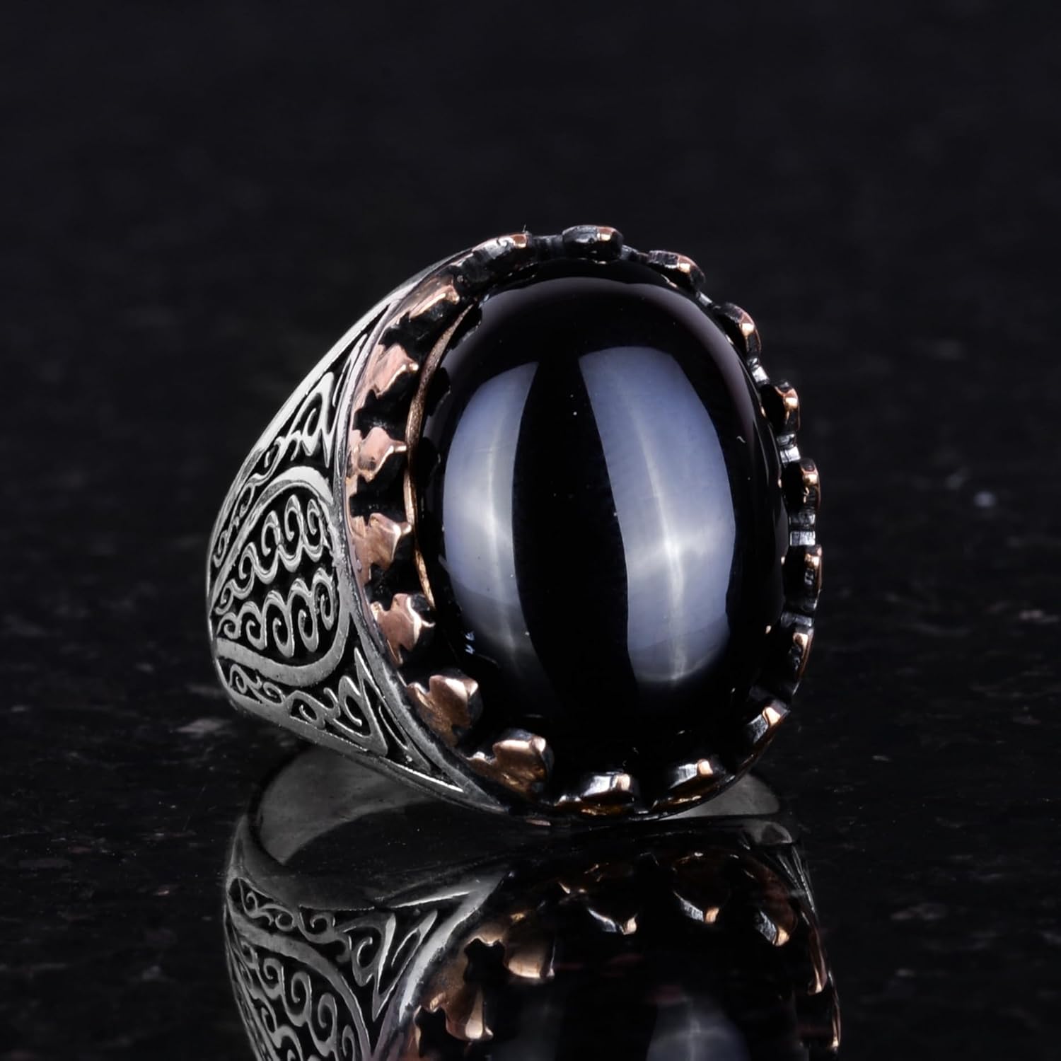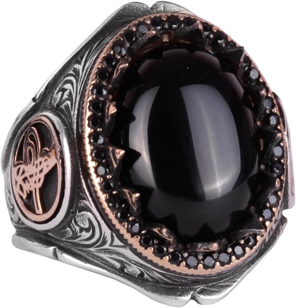 925K Katı Gümüş Erkek Yüzük Doğal Taşlarla - El Yapımı Şıklık (Oniks Taşı)
