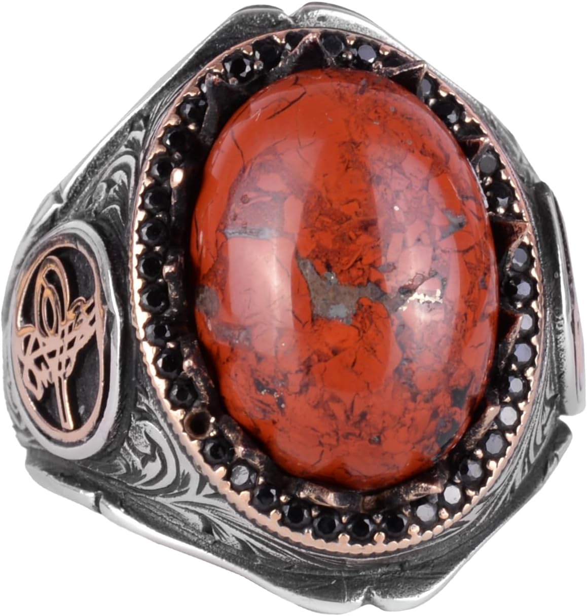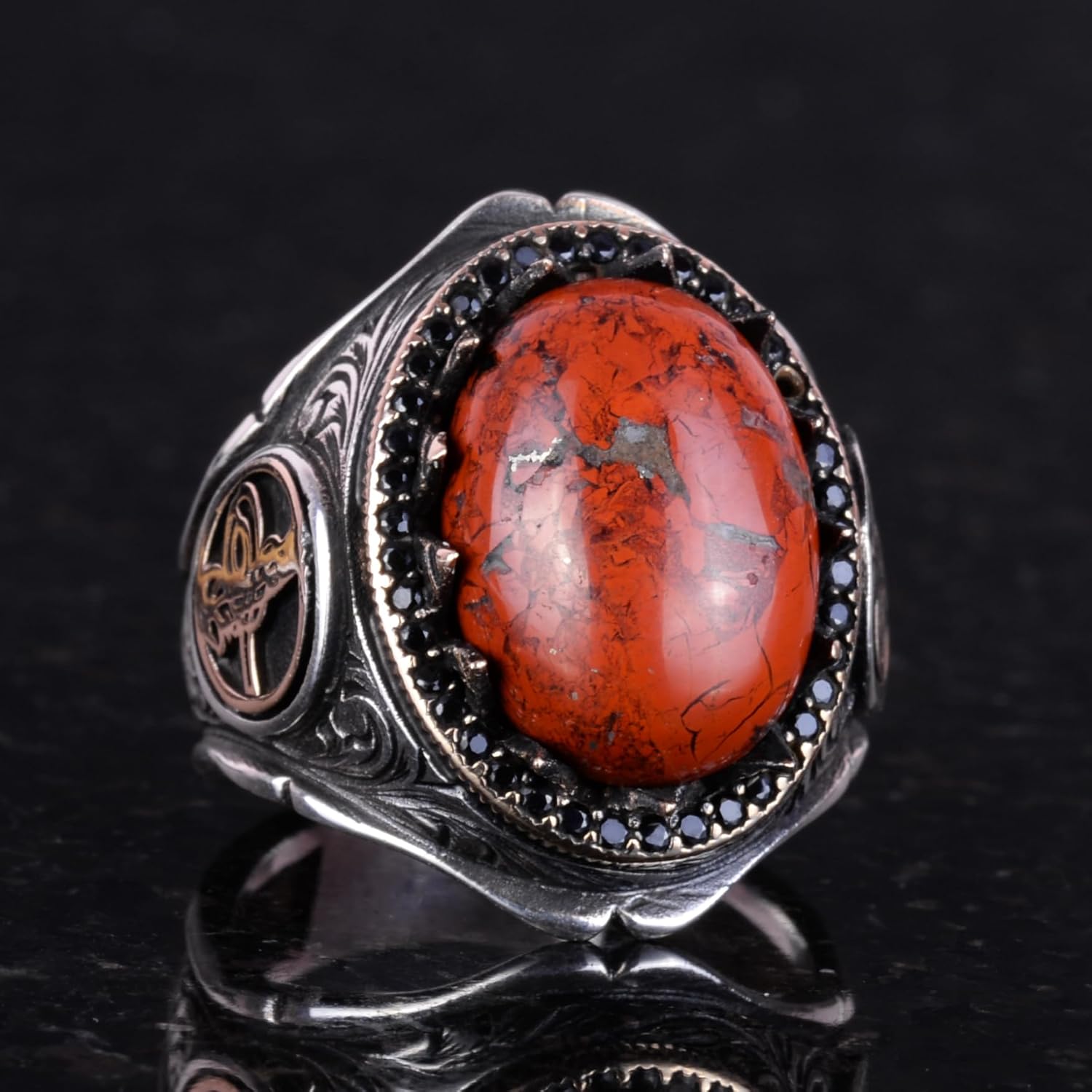 925K Katı Gümüş Erkek Yüzük Doğal Taşlarla - El Yapımı Zarafet (Kırmızı Kan Taşı)