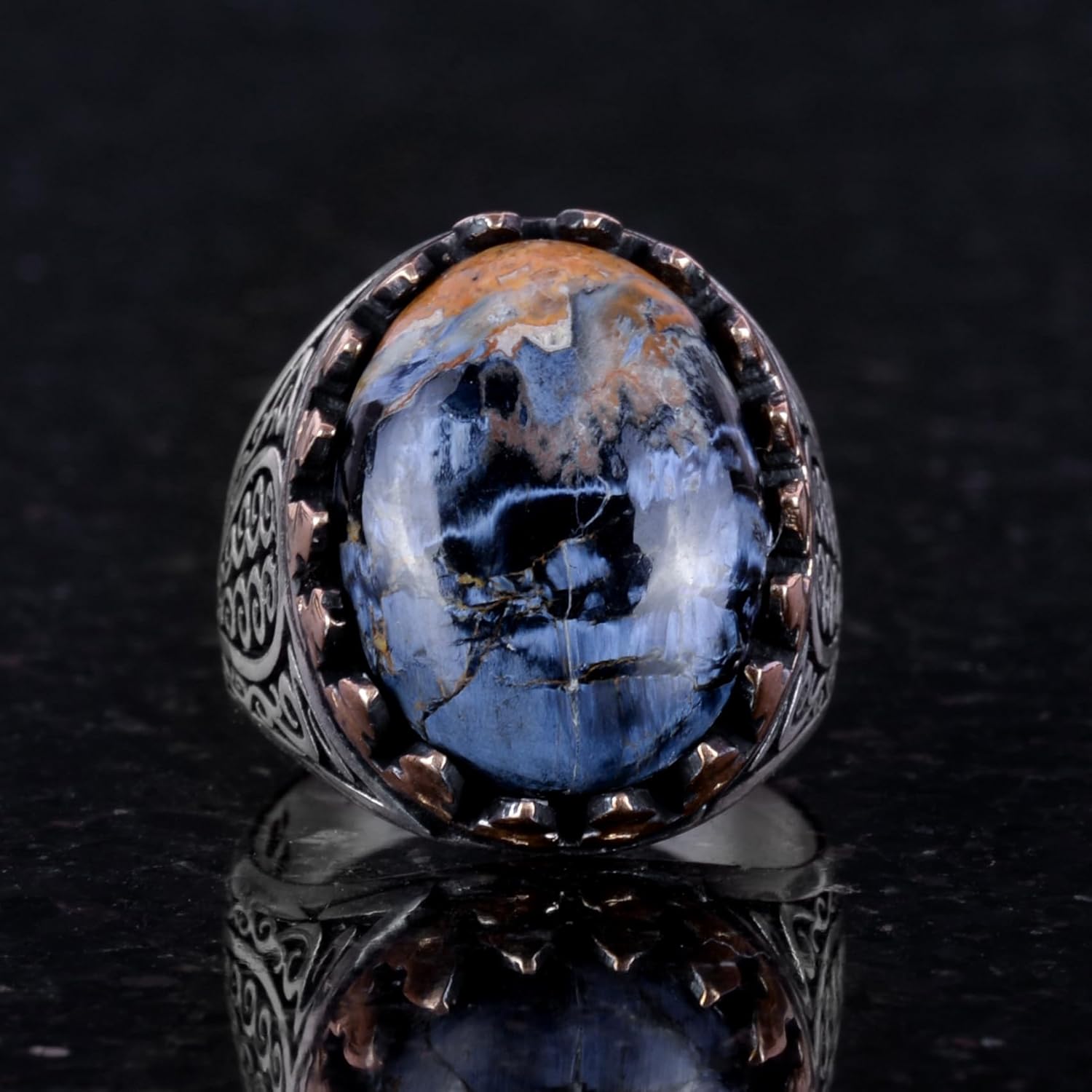925K Katı Gümüş Erkek Yüzük - Doğal Taşlarla El Yapımı Şıklık (Pietersite Taşı)