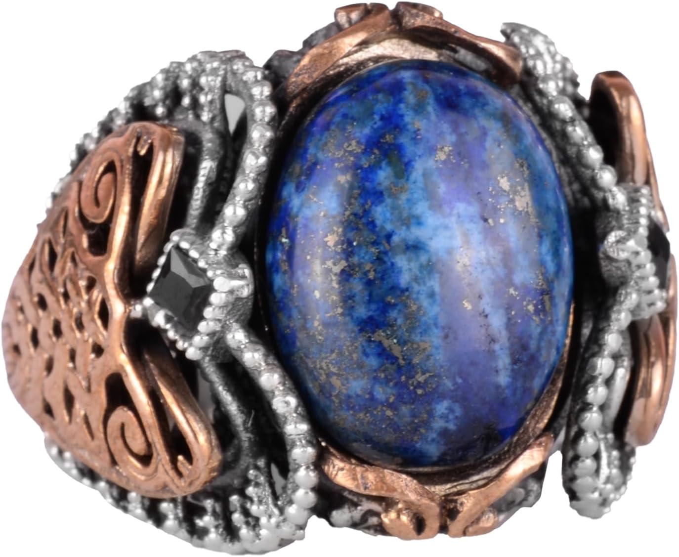 925K Katı Gümüş Erkek Yüzük, Doğal Lapis Lazuli Taş Yüzük, Bilgelik ve Gerçek Tasarımı