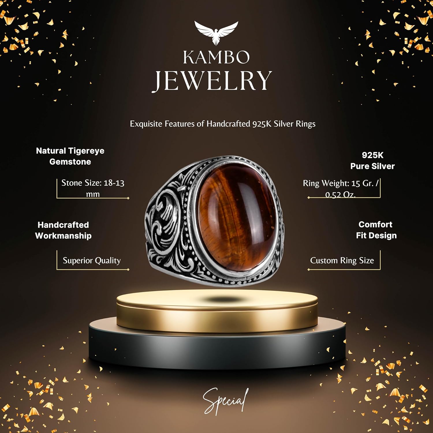 925K Katı Gümüş Erkek Yüzük, El Yapımı Kaplan Göz Taşı Yüzük - Cesur Tasarım