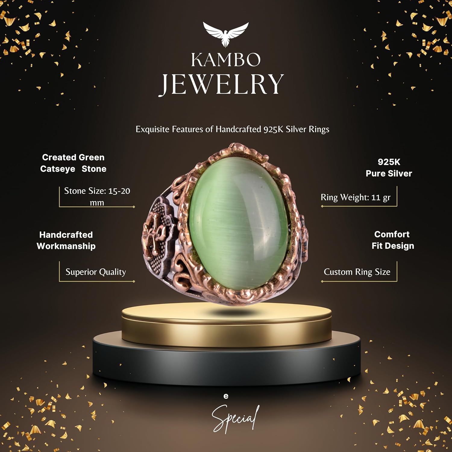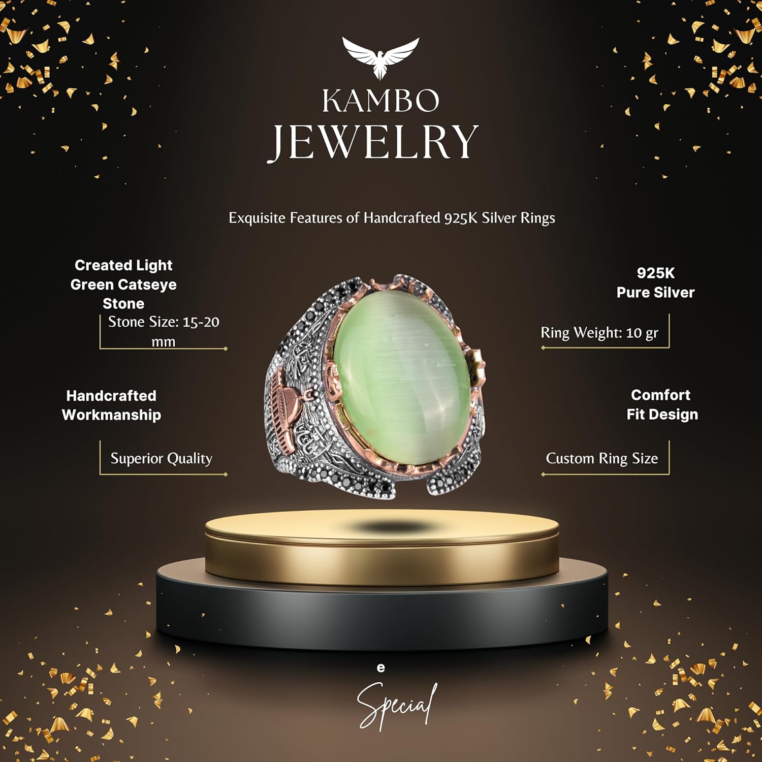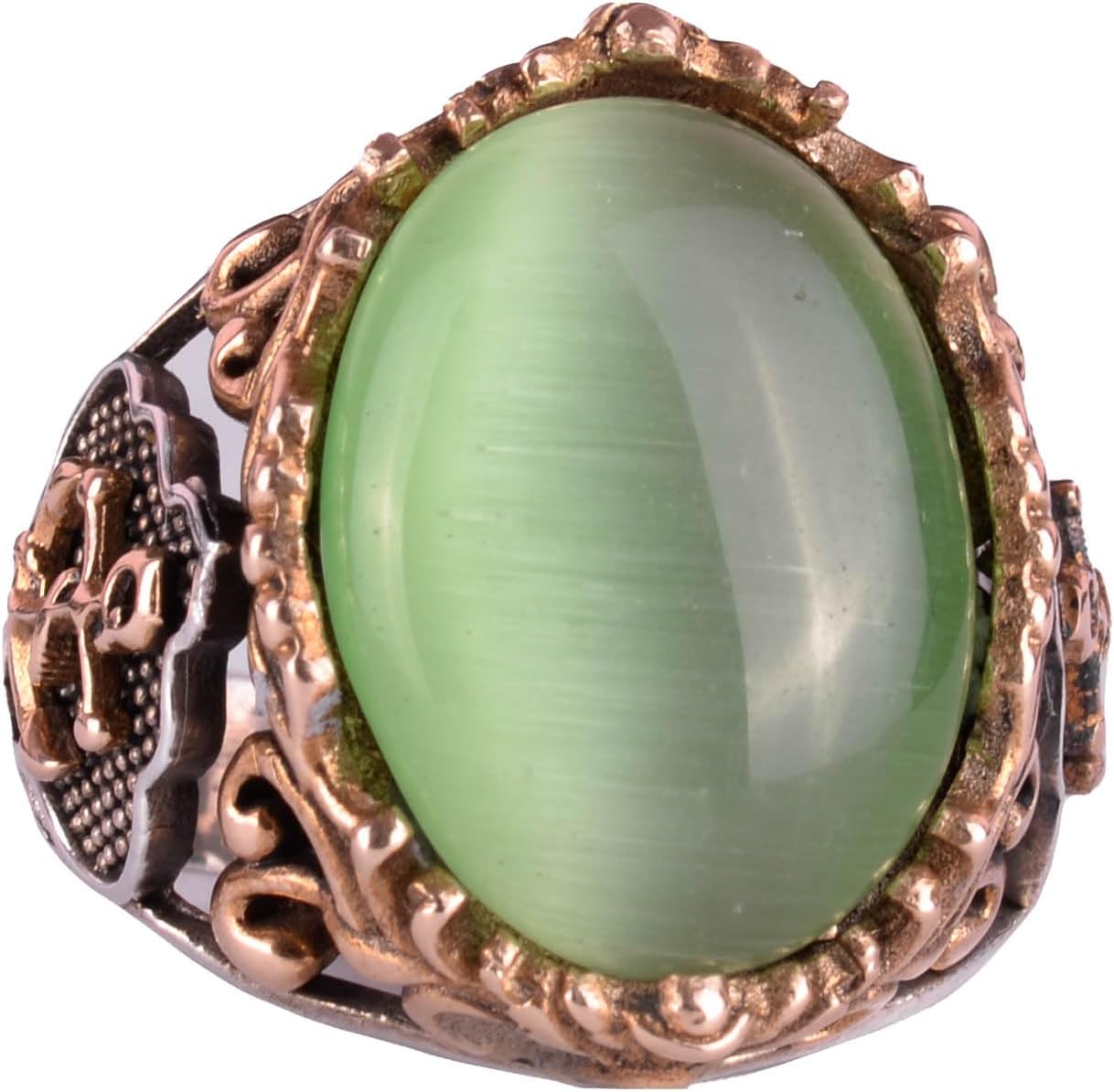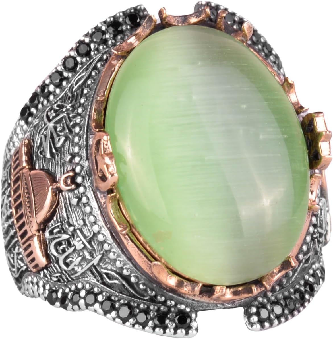 Açık Yeşil Kedi Gözü Yapay Taş Yüzük, Kaaba Gümüş Yüzük, 925K Ayar Gümüş Yapay Taş Yüzükler - Çeşitli & Farklı Koleksiyon