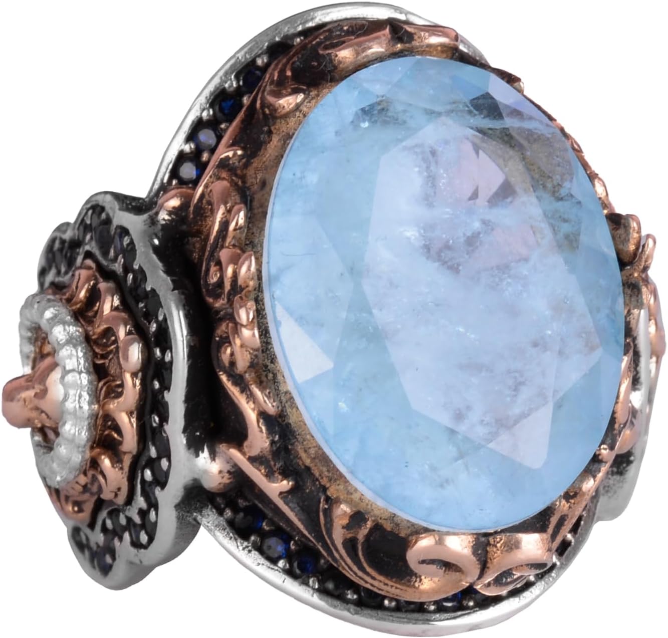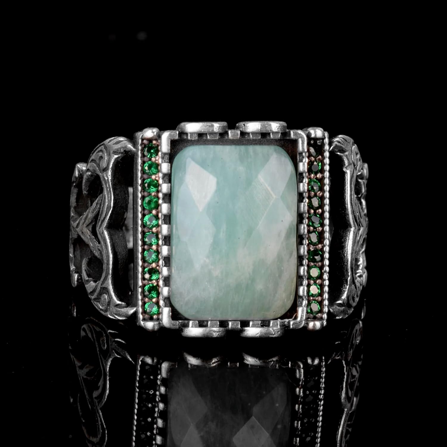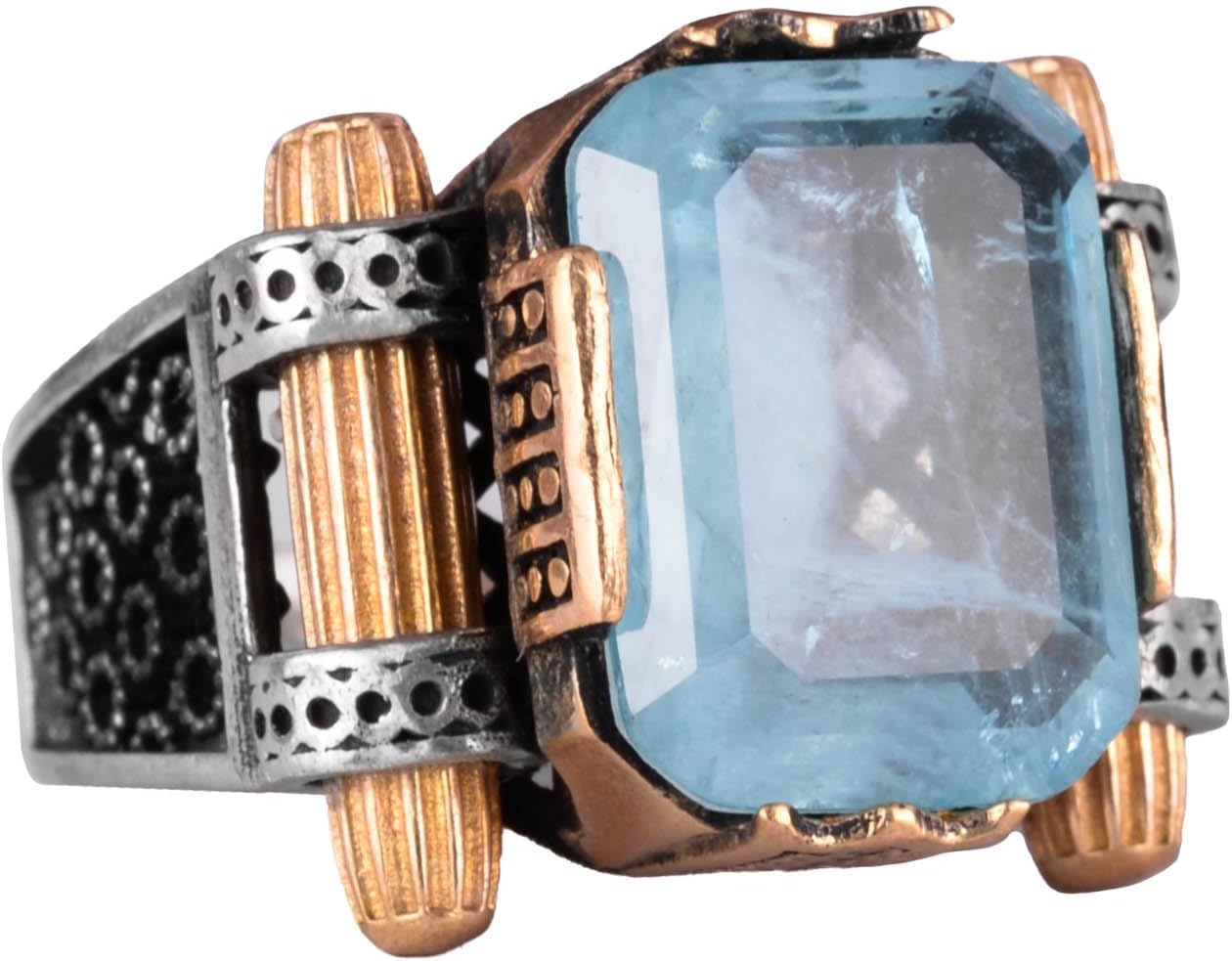 Akuamarin Erkek Yüzüğü, 925 Ayar Gümüş Yüzük, Gerçek Doğal Akuamarin Taşlı Yüzük