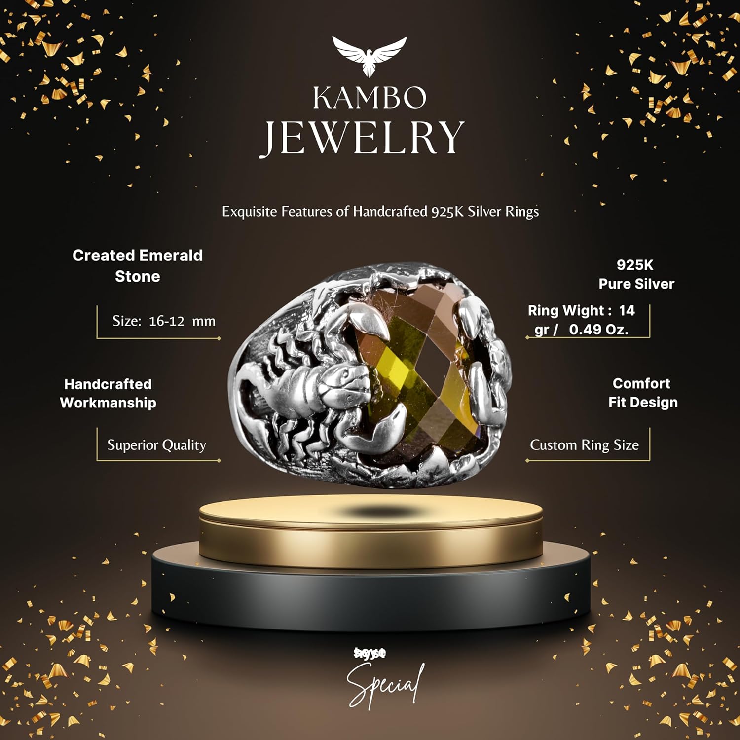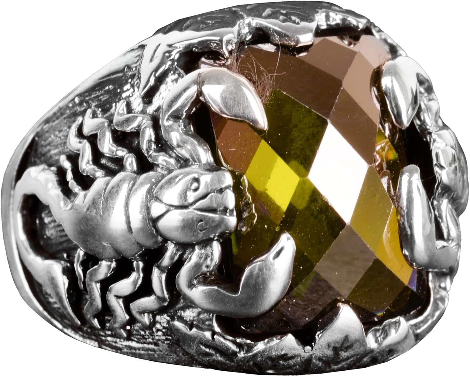 Akrepler Yüzüğü, Hayvan Yüzükleri, Yeşil Zirkon Taşlı Yüzük, 925 Ayar Gümüş Erkek Yüzüğü