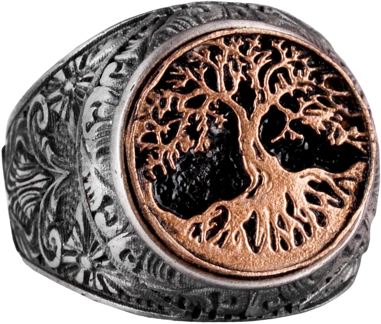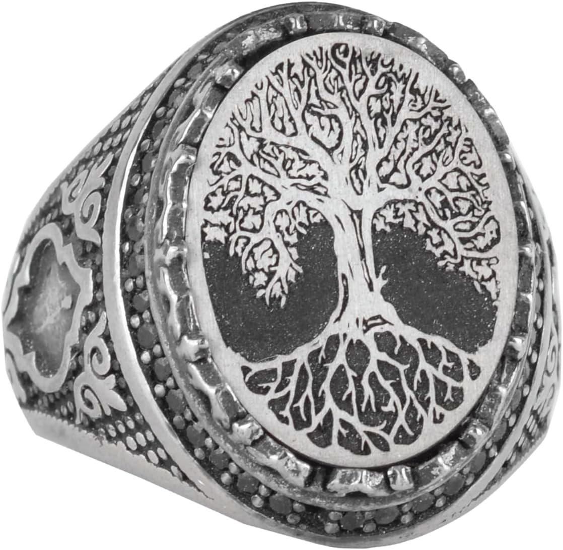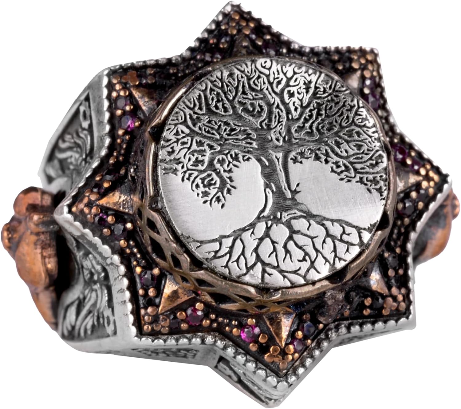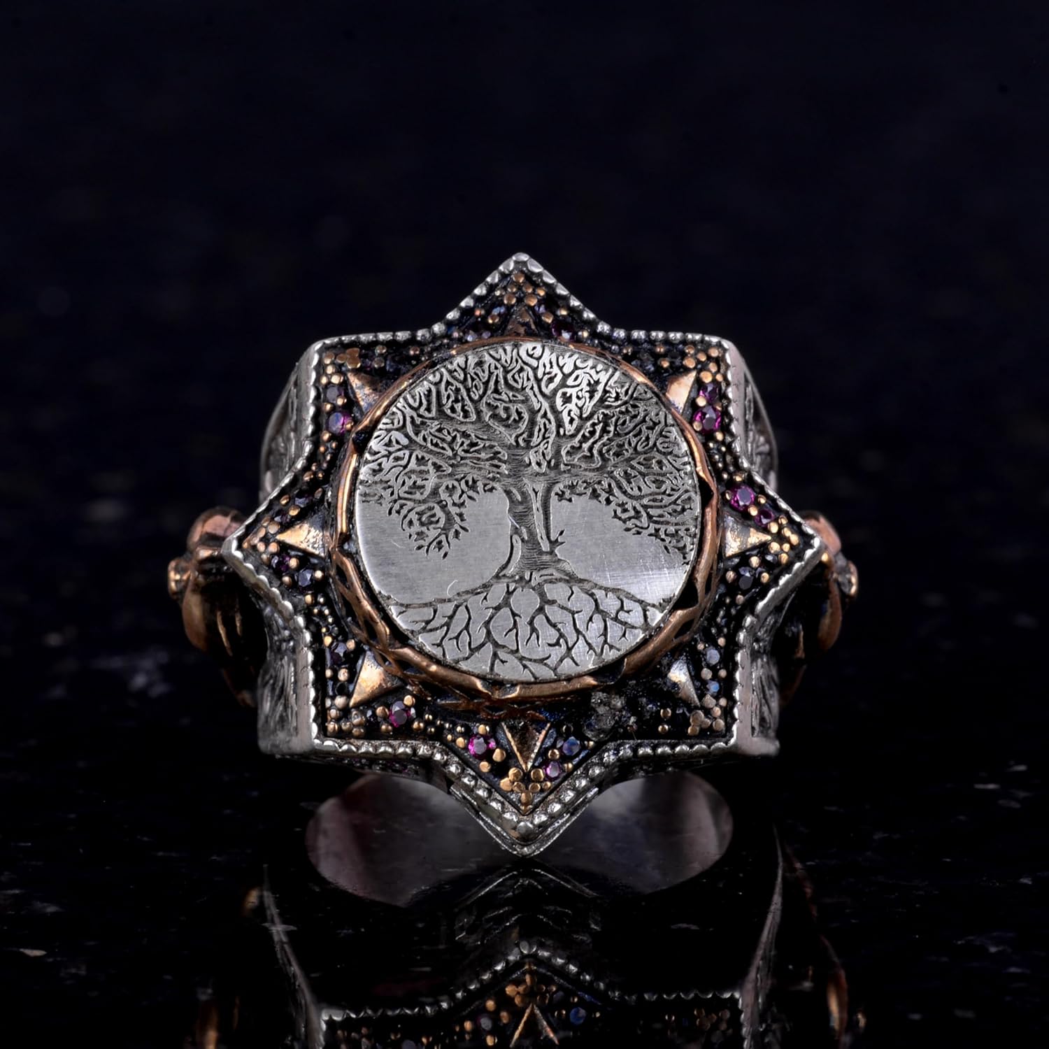 Ağaç Hayatı Gümüş Erkek Yüzük, 925 Ayar Gümüş Yüzük, El Yapımı Yggdrasil Ağaç Hayatı Yüzüğü
