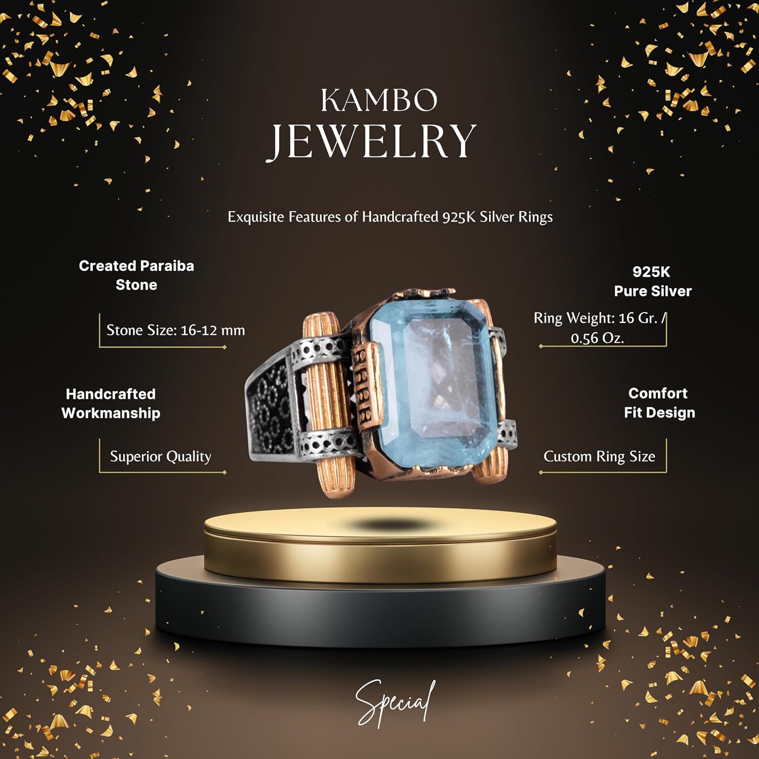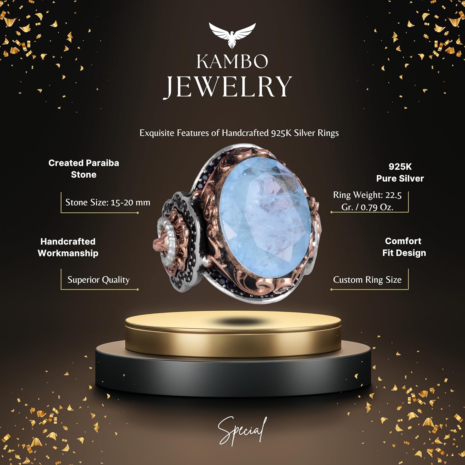 Açık Mavi Yapay Paraiba Taşı Yüzük - 925 Ayar Gümüş El Yapımı Yüzük - Erkek Takısı