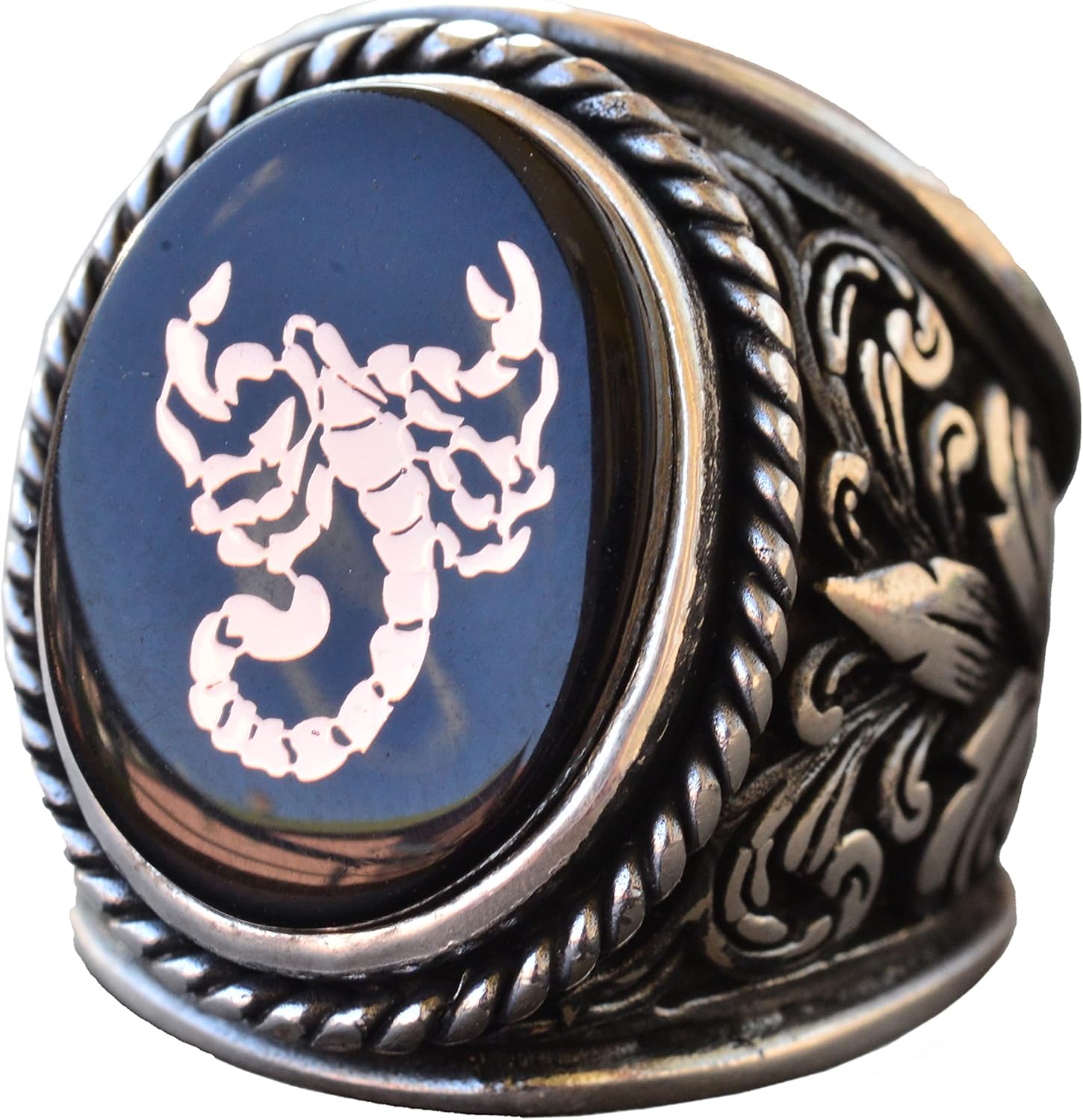 Akrep Hayvan Yüzüğü - Erkekler için Sterlin Gümüş Zambak Desenli Büyük Yüzük
