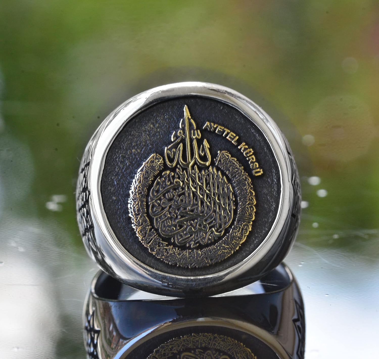 Ayatul Kursi İşlemeli Gümüş Erkek Yüzükleri, İslami Hediyeler, Erkekler İçin Dini Hediyeler, Müslüman Takıları
