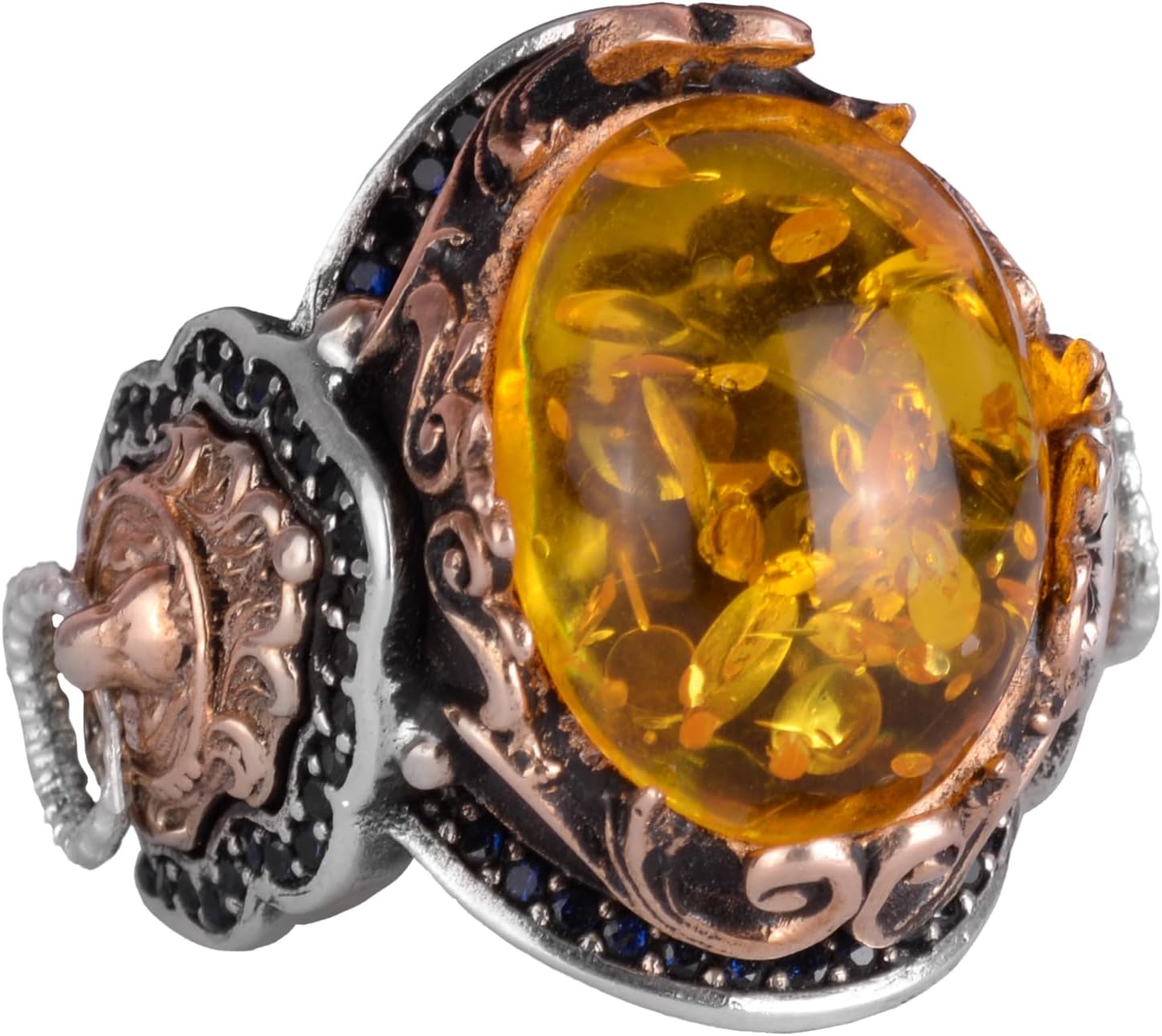 Bal Amber Yapay Taşlı Yüzük, 925 Ayar Gümüş Yüzük, Denizci Ahtapot Gümüş Yüzük - Çeşitli & Farklı Koleksiyon