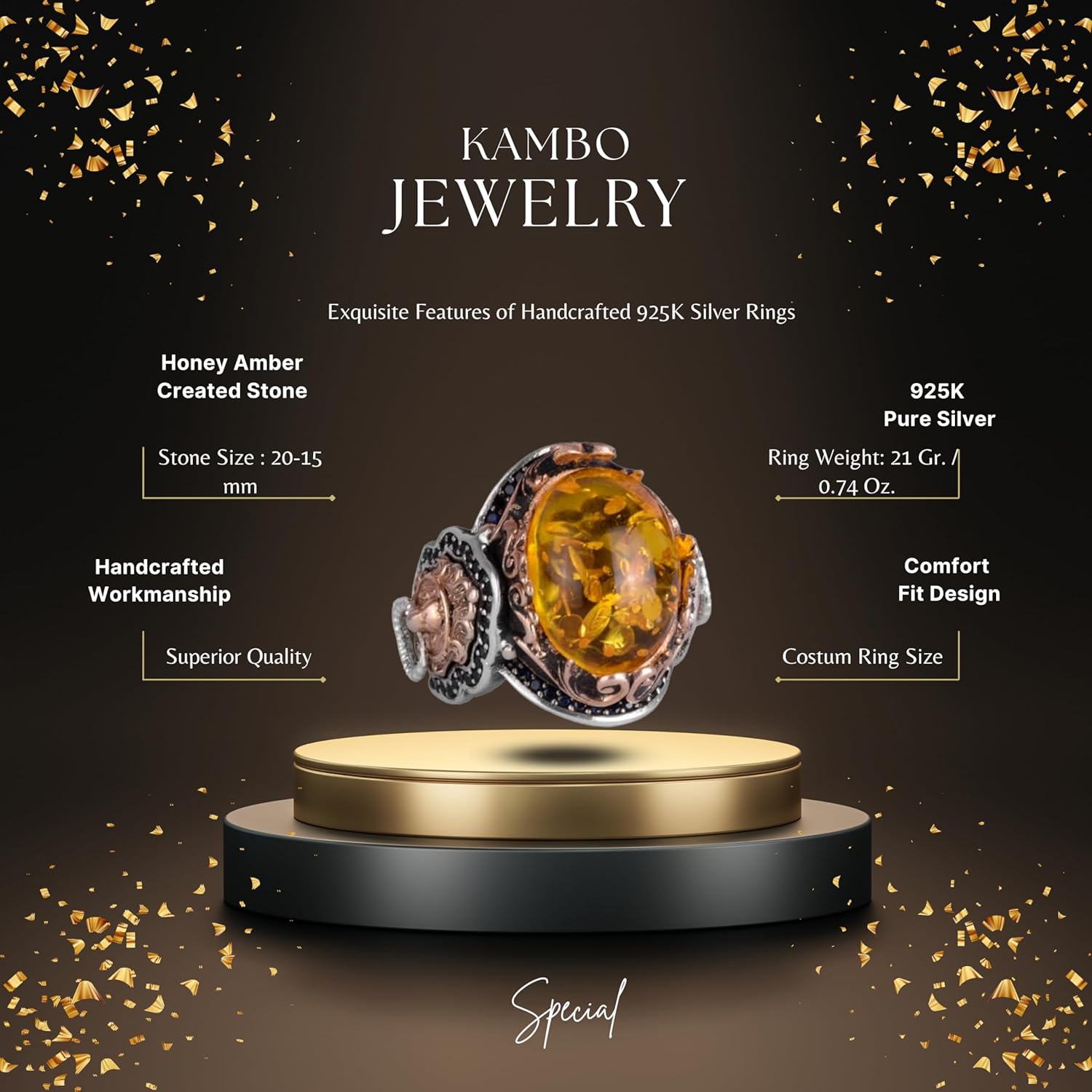 Bal Amber Yapay Taş Yüzük | Şık El Yapımı 925 Ayar Gümüş Erkek Yüzük