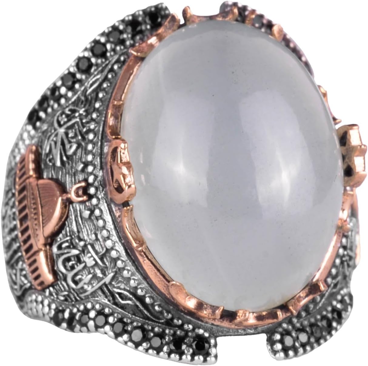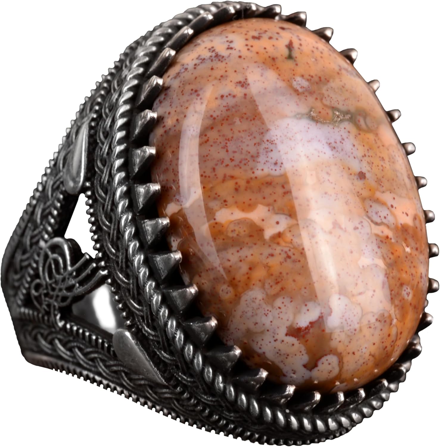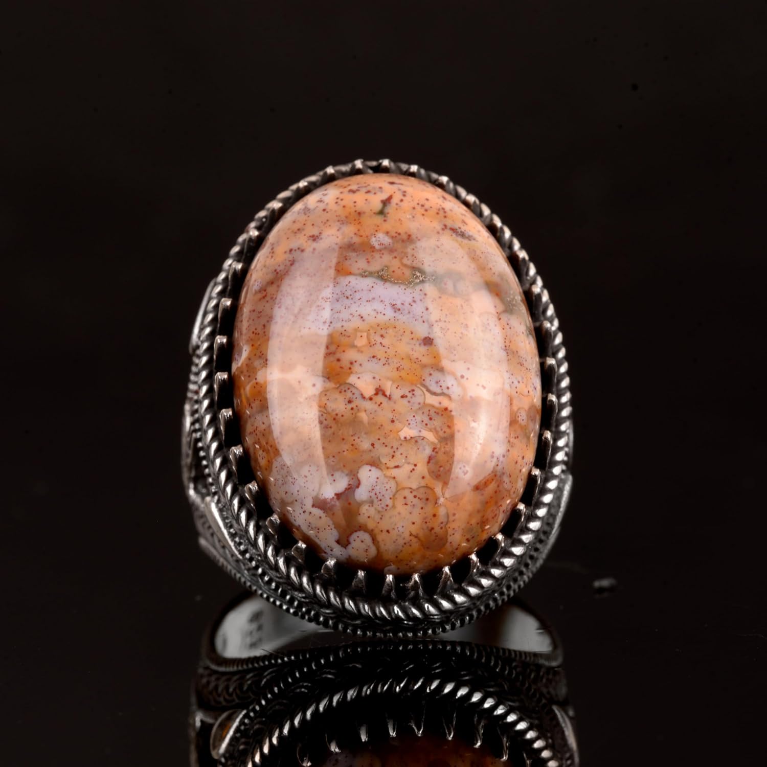 Büyük Yüzük, Gerçek Doğal Ateş Akik Taşı Yüzüğü, 925 Ayar Gümüş Yüzük Erkekler İçin