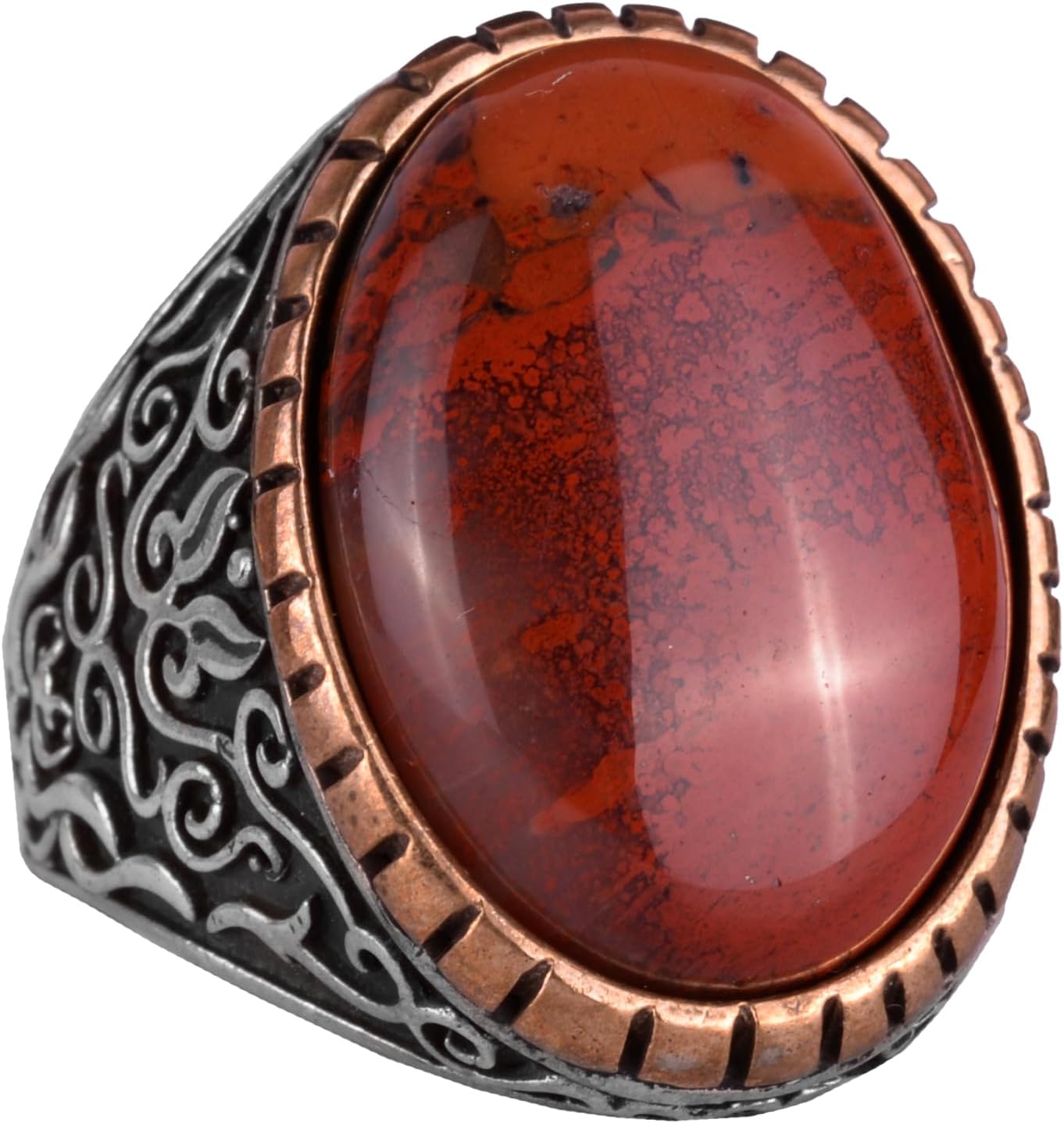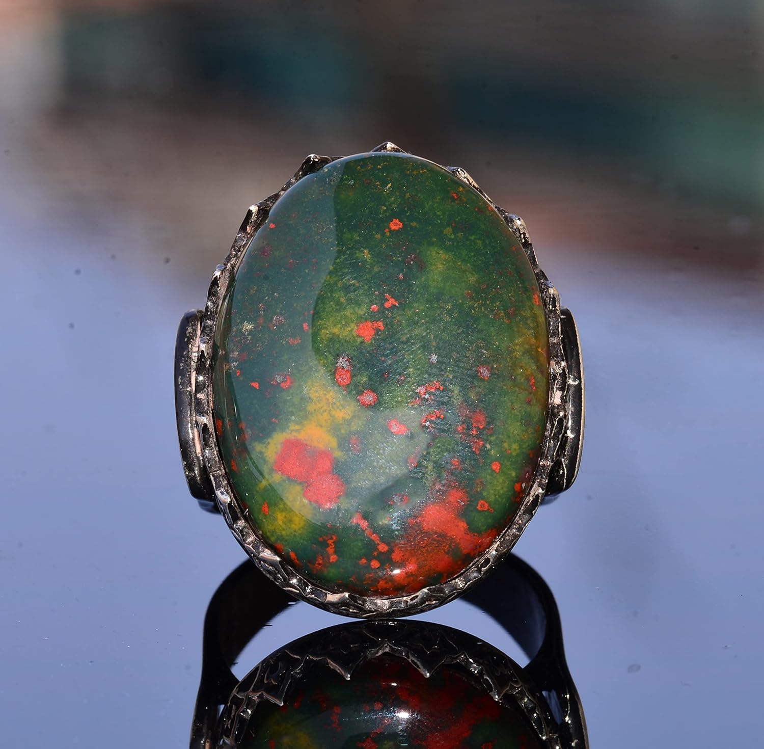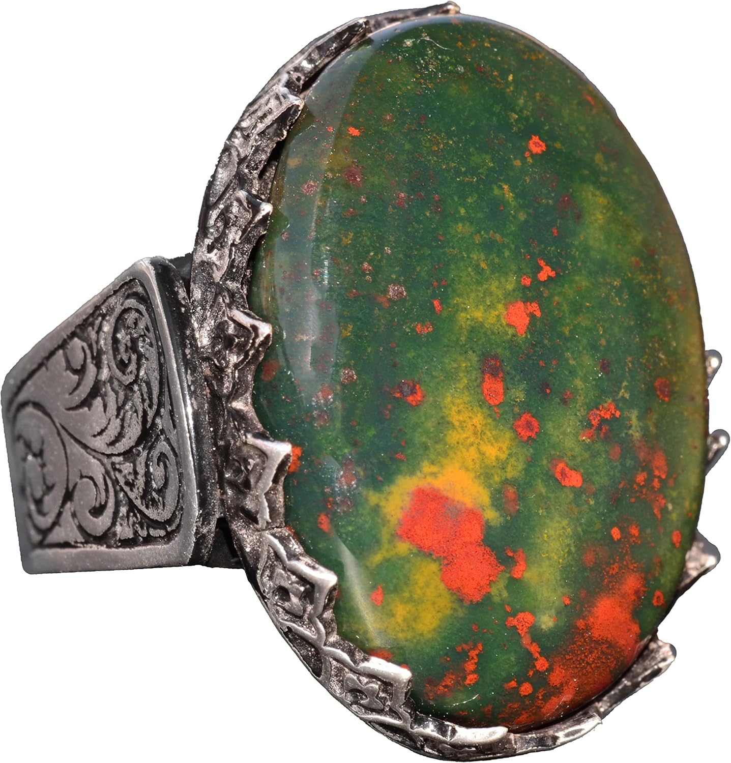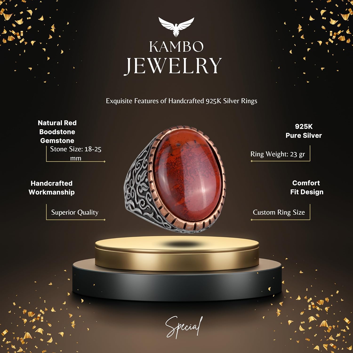Büyük El yapımı 925 Ayar Gümüş Erkek Yüzük, Gerçek Kan Taşı Taşıyla, Şık Taş Koleksiyonu