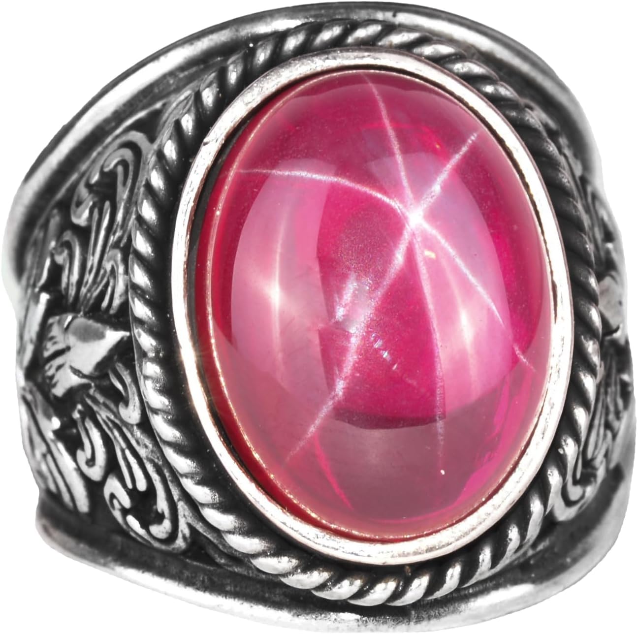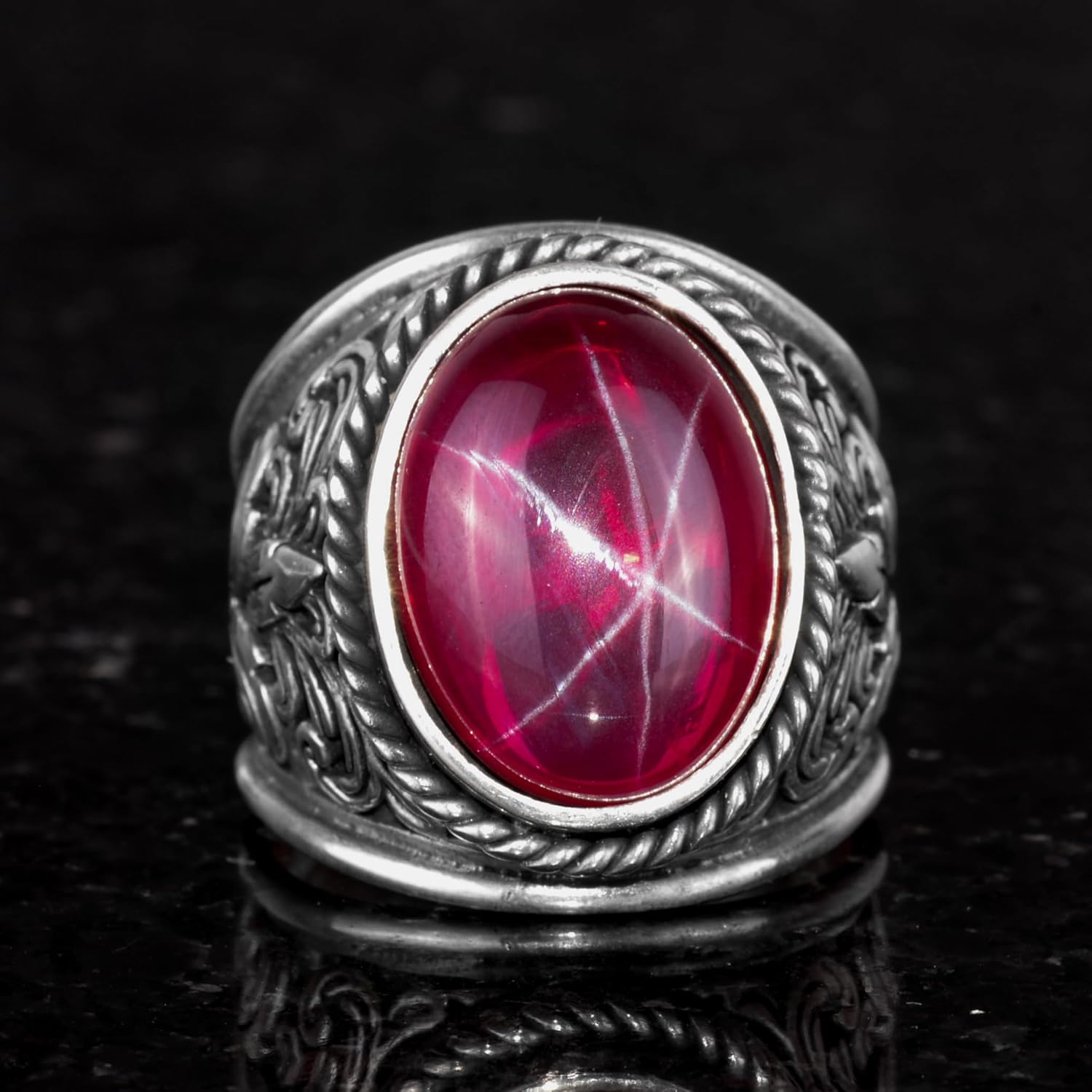 Büyük Gümüş Yüzük, Gerçek Doğal Yıldız Yakutu Taşlı Yüzük, 925 Ayar Gümüş Yüzük Erkekler İçin