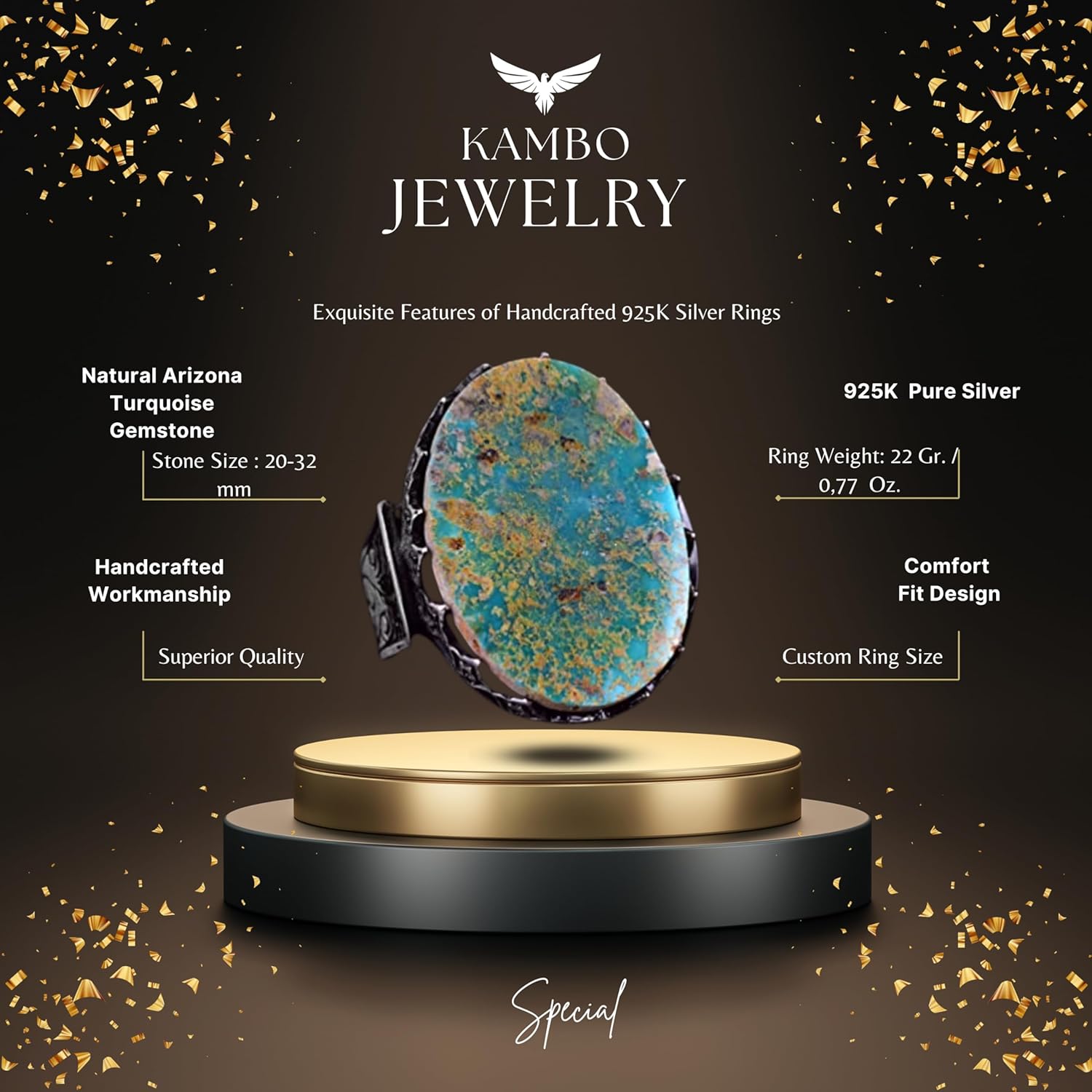Büyük halka, Gerçek Doğal Arizona Turkuaz Taşı Yüzük, El Yapımı Yüzük, 925 Ayar Gümüş Yüzük Erkekler İçin