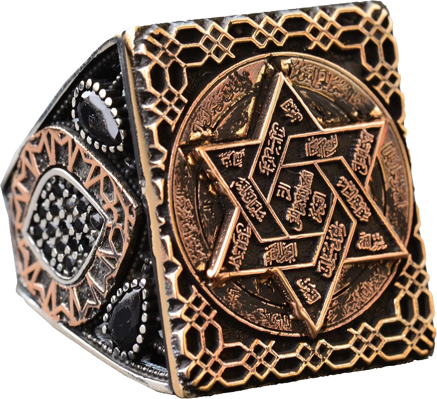 Büyük Erkek Yüzüğü, Kabbalah Yüzüğü, Davud Yıldızı Yüzüğü, Süleyman Mührü Yüzüğü, 925K Katı Sterlin Gümüş Yüzük