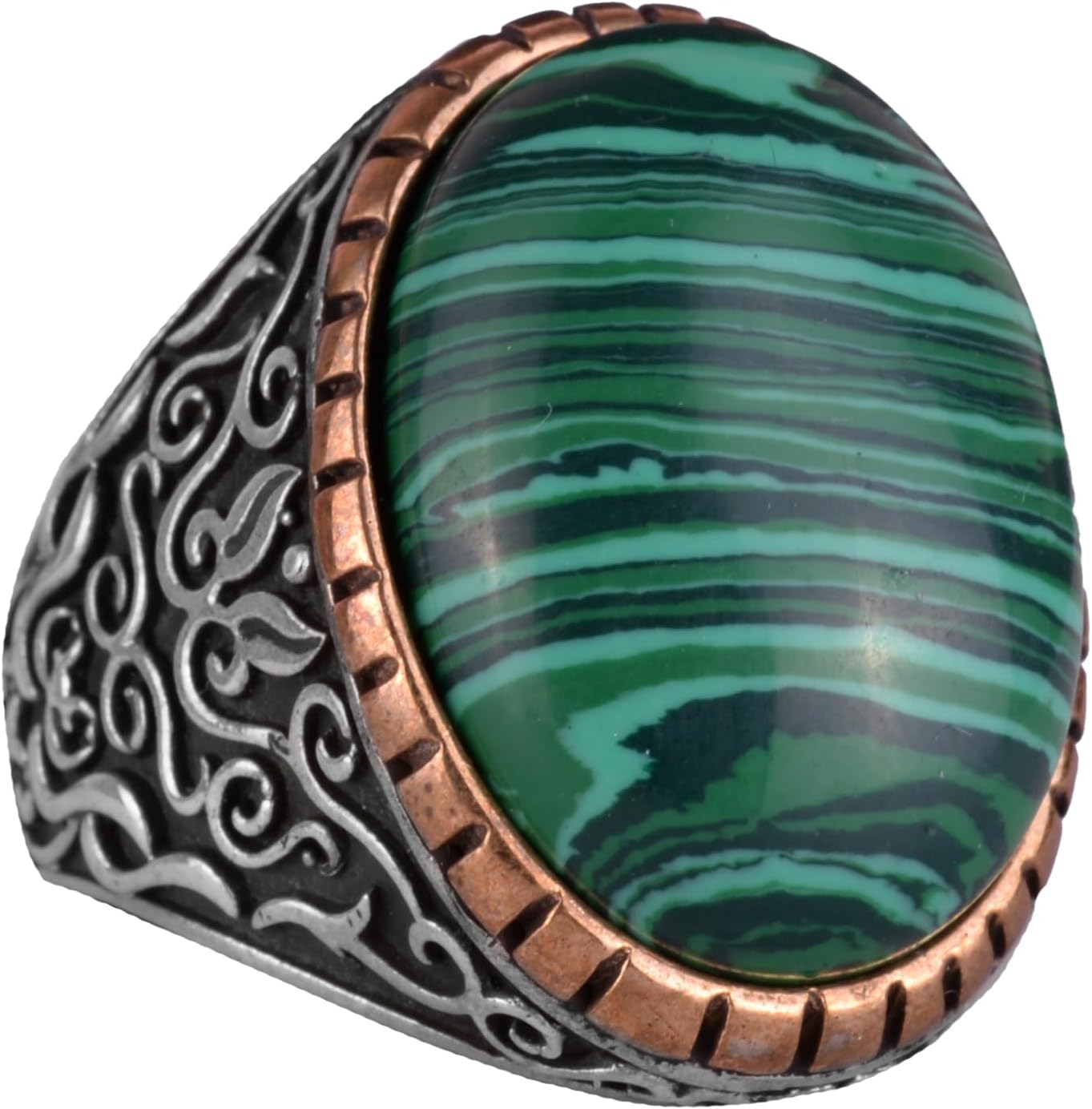 Büyük Yüzük, Doğal Malakit Taşı Yüzüğü, 925 Ayar Gümüş Erkek Yüzüğü
