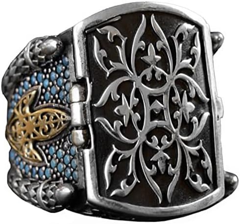 925 Ayar Gümüş Erkek Kutu Yüzük, Turkuaz Taşlarla, Erkekler İçin Farklı Tasarım
