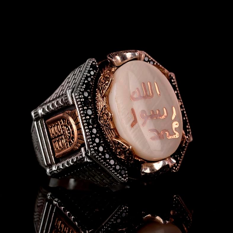 925 Ayar Gümüş Erkek Yüzüğü - Davud Yıldızı Takısı (İslami Hat)