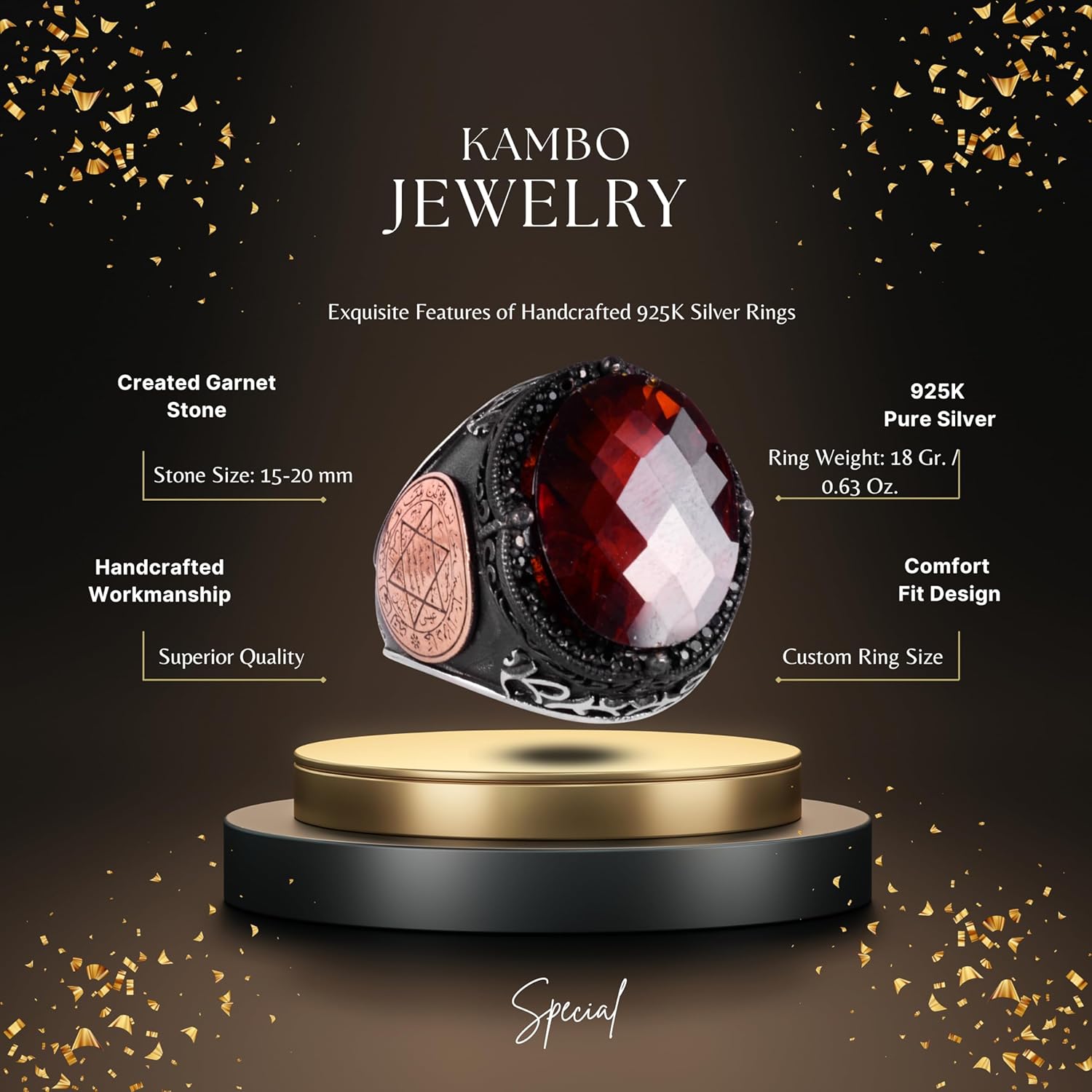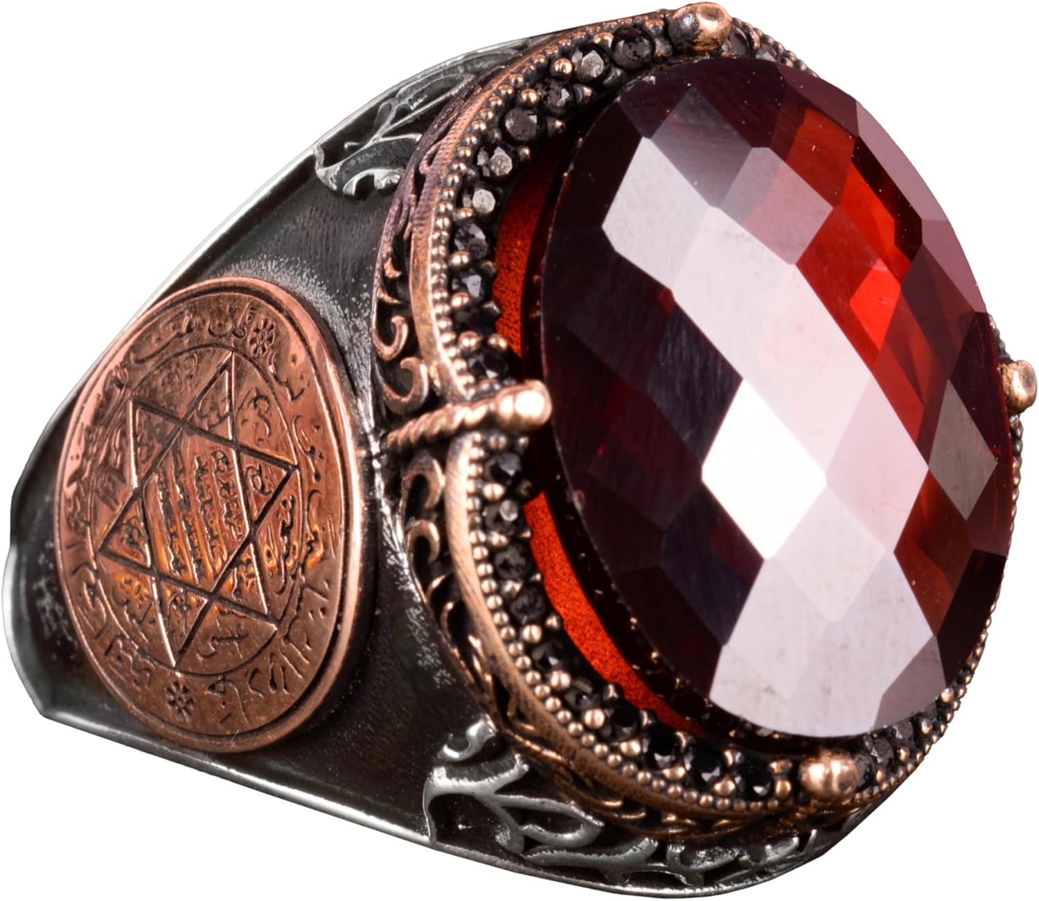 David Yıldızı Yüzüğü, Yapay Taş Yüzük, 925 Ayar Gümüş Süleyman Yüzüğü (Yapay Granat Taşı)