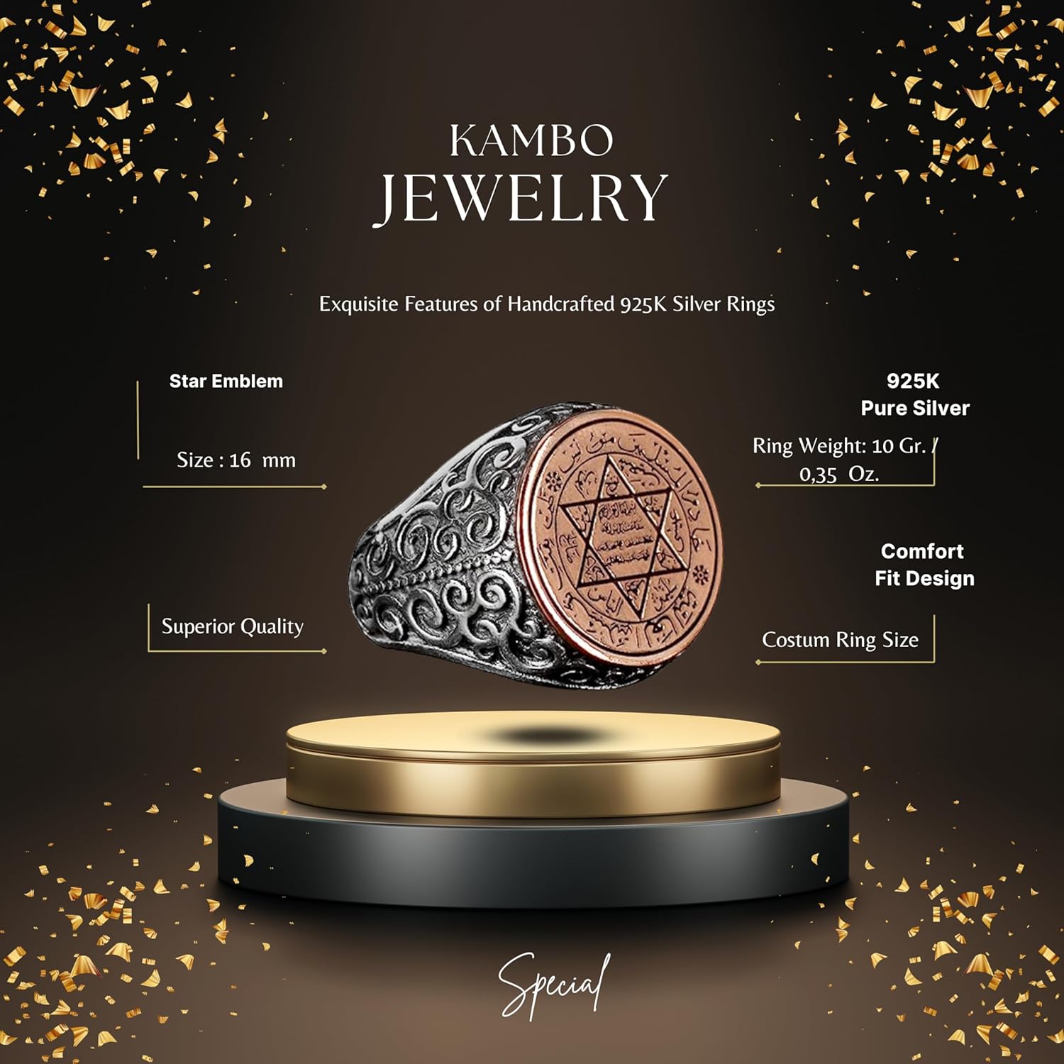 David Yıldızı Yüzüğü,, 925 Ayar Gümüş Erkek Yüzüğü, Süleyman Yüzüğü