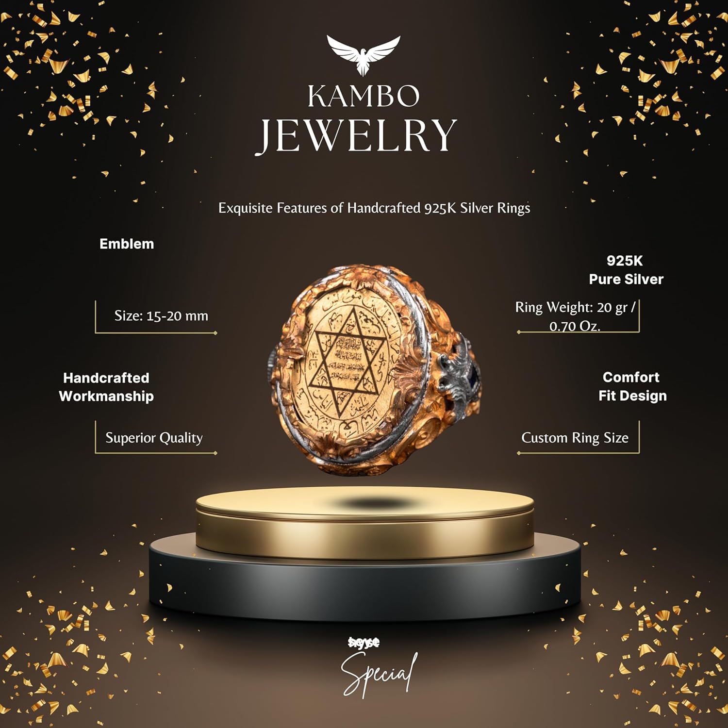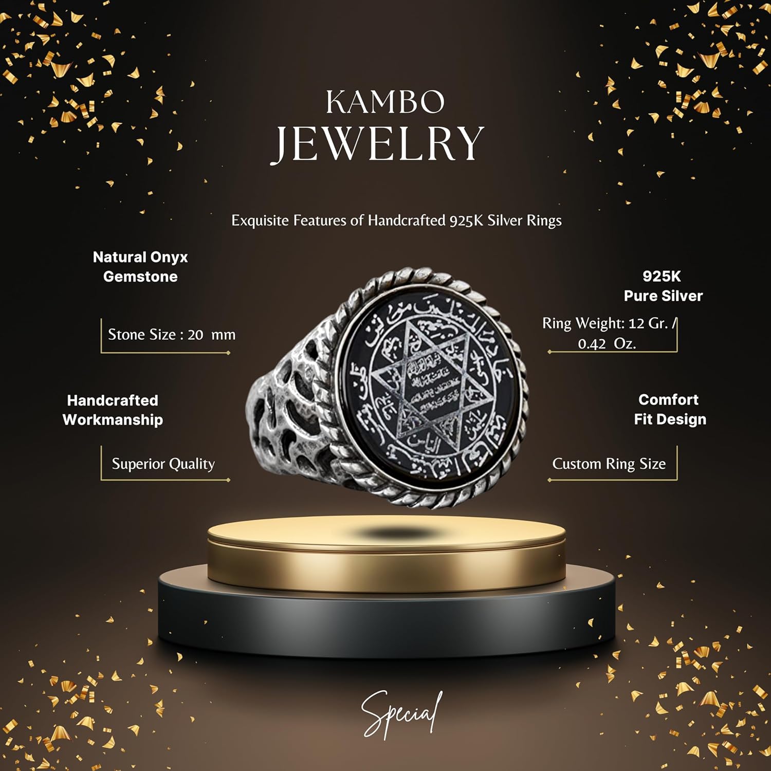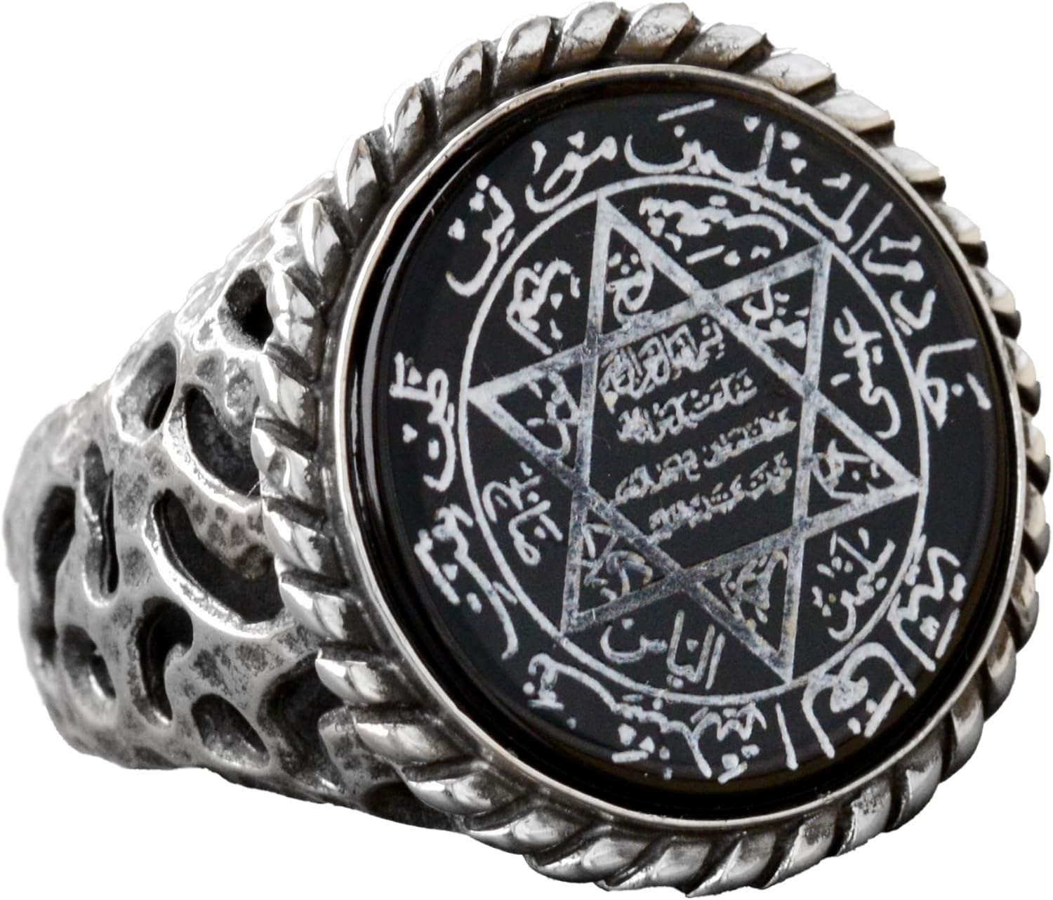 Davud of Star, Süleyman Tılsımı 925 Ayar Gümüş Erkek Yüzük - Spiritüel Koruma