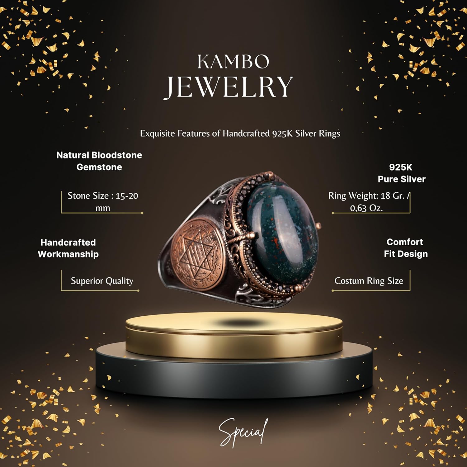 David Yıldızı Yüzük, Yapay Taş Yüzük, 925 Ayar Gümüş Süleyman Yüzüğü (Sultanite Yapay Taş)