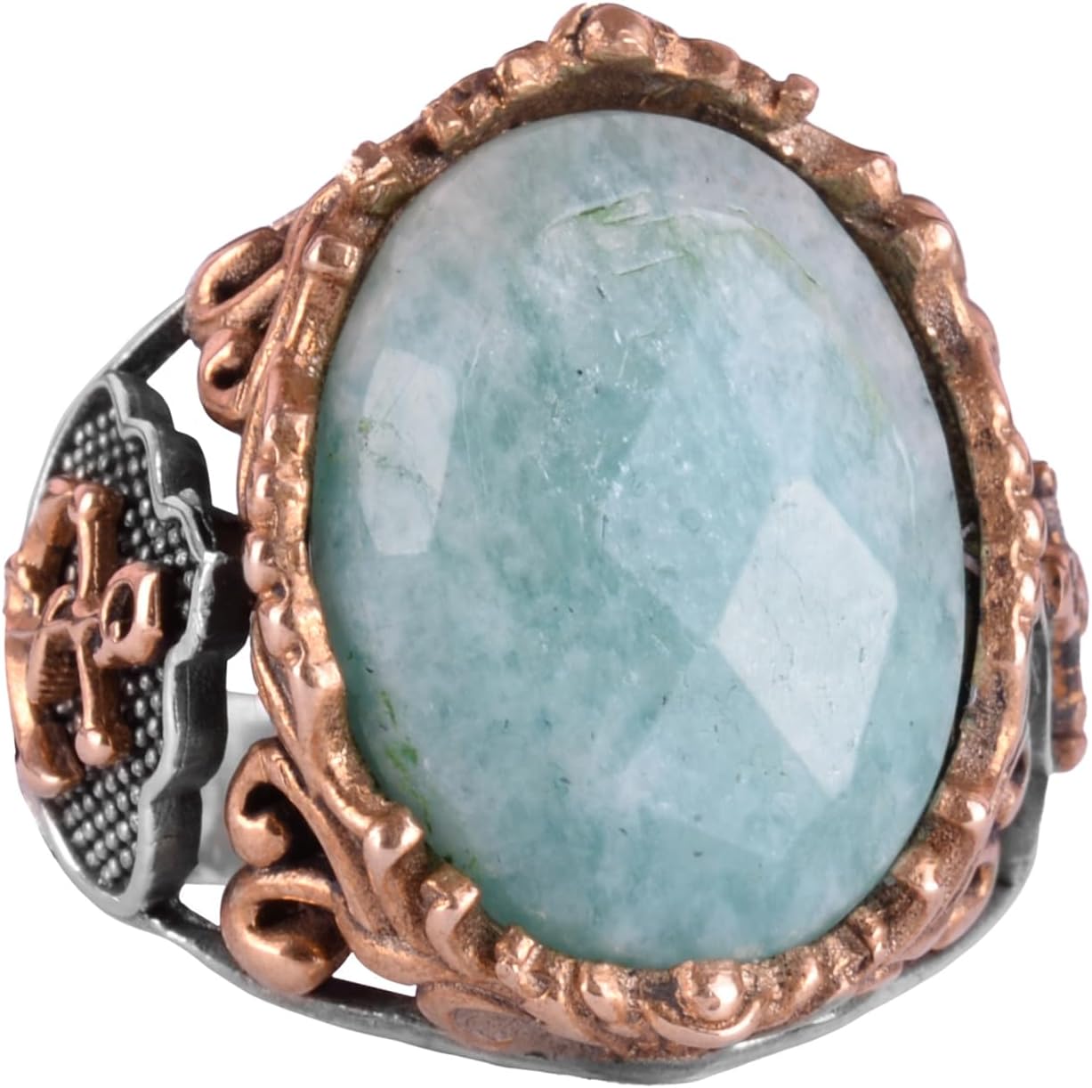 Denizci Çapa Gümüş Yüzük, Doğal Taş Yüzük Erkekler İçin, 925 Ayar Gümüş Yüzük, (Amazonit)