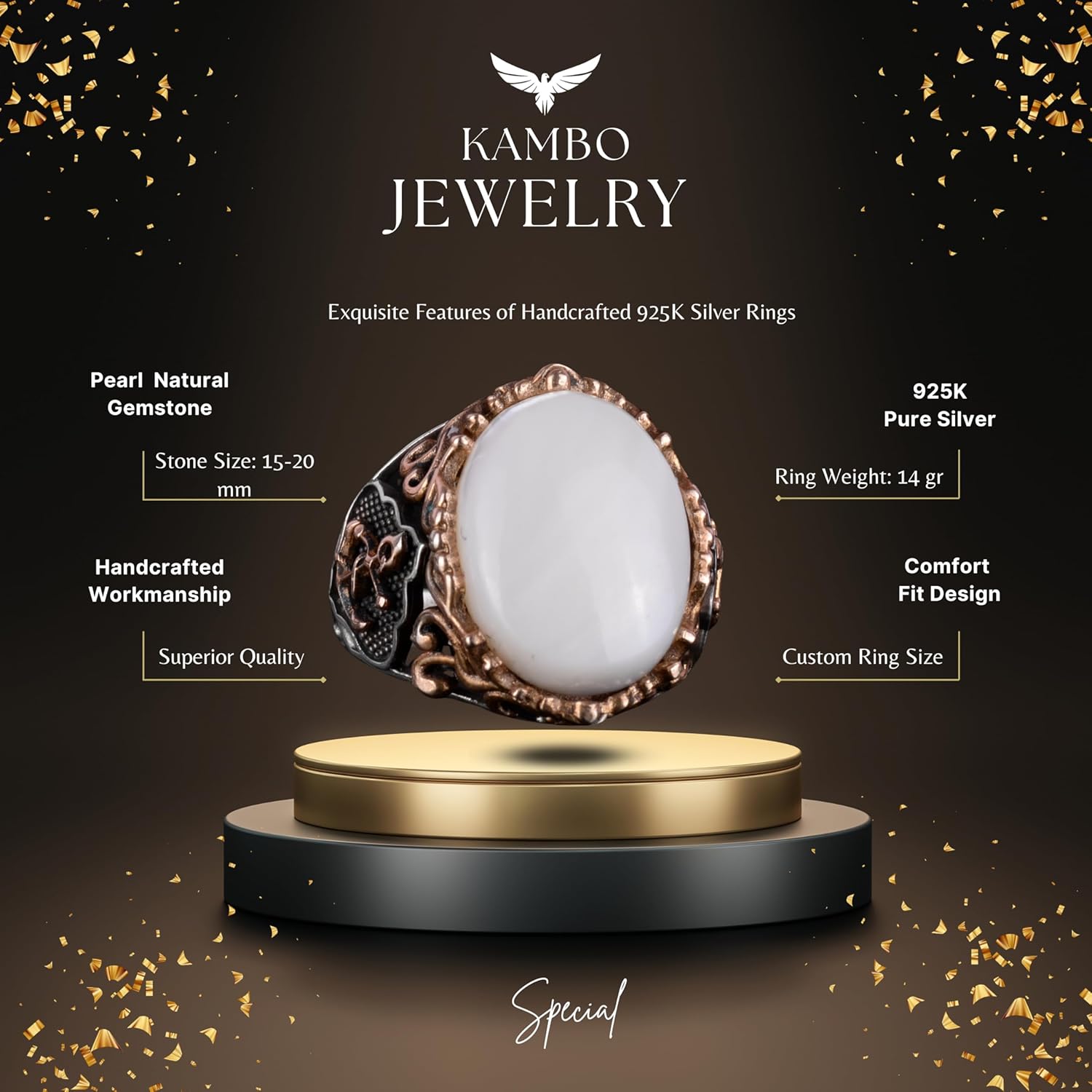 Denizci Çapa Gümüş Yüzük, Doğal Sedef Taş Yüzük, 925 Ayar Gümüş Yüzük