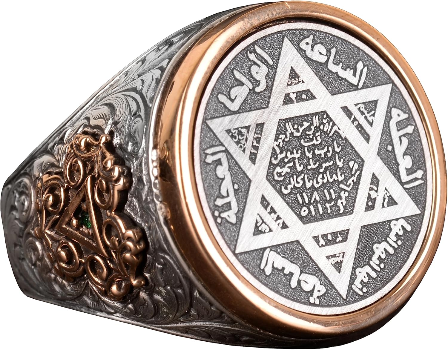 Davud Yıldızı Yüzüğü, Yapay Taş Yüzük, 925 Ayar Gümüş Süleyman Yüzüğü (Yeşil Yapay Taş)