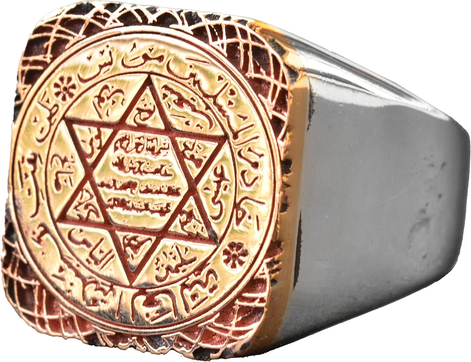 Davud Yıldızı Yüzük, Süleyman Mührü, Süleyman Yüzüğü, 925 Ayar Gümüş Erkek Yüzük, Gri