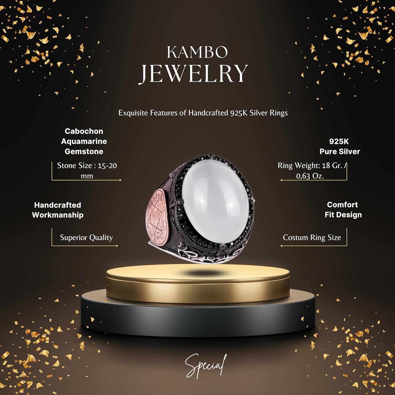 Davud Yıldızı Yüzük | Cabochon Akuamarin Taşı | Huzurlu 925 Ayar Gümüş Erkek Yüzük | Netlik ve Sakin Tasarım