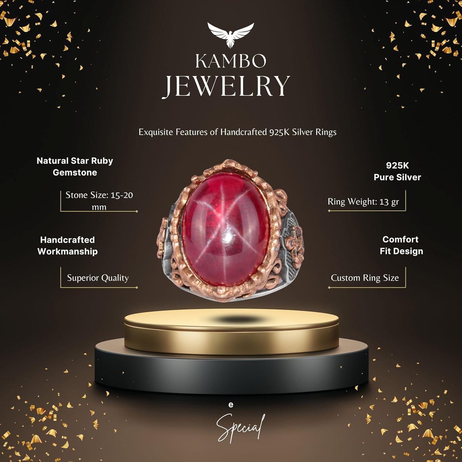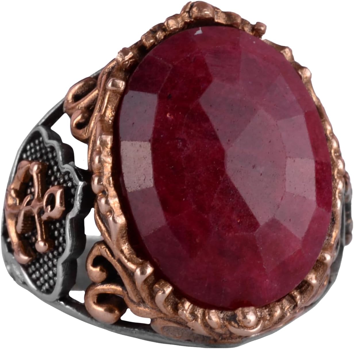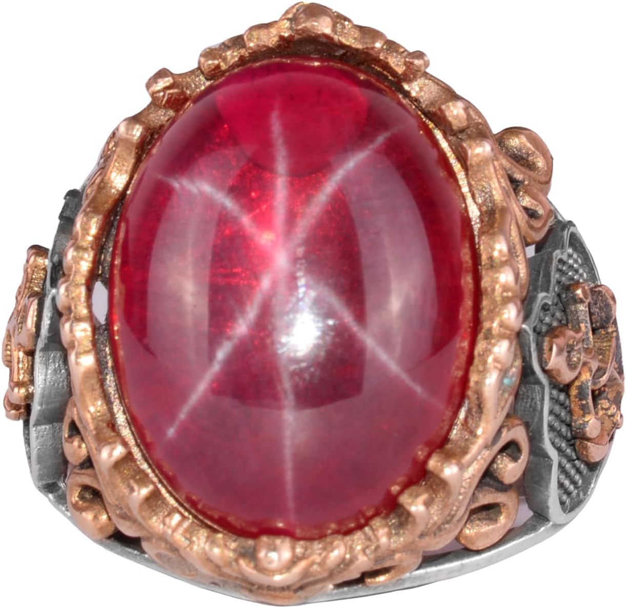 Denizci Çapa Yüzüğü, Gerçek Doğal Star Ruby Taşı Yüzüğü, 925 Ayar Gümüş Erkek Yüzüğü