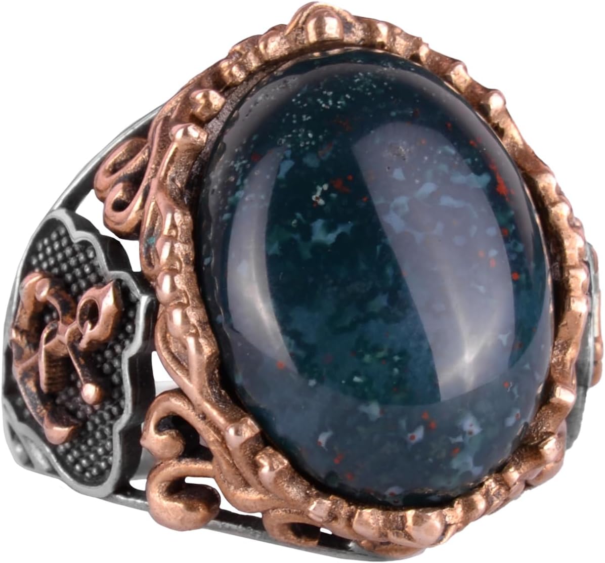 Denizci Çapa Gümüş Yüzük, Doğal Taş Yüzükler için Erkekler, 925 Ayar Gümüş Yüzük, (Yeşil Kan Taşı)