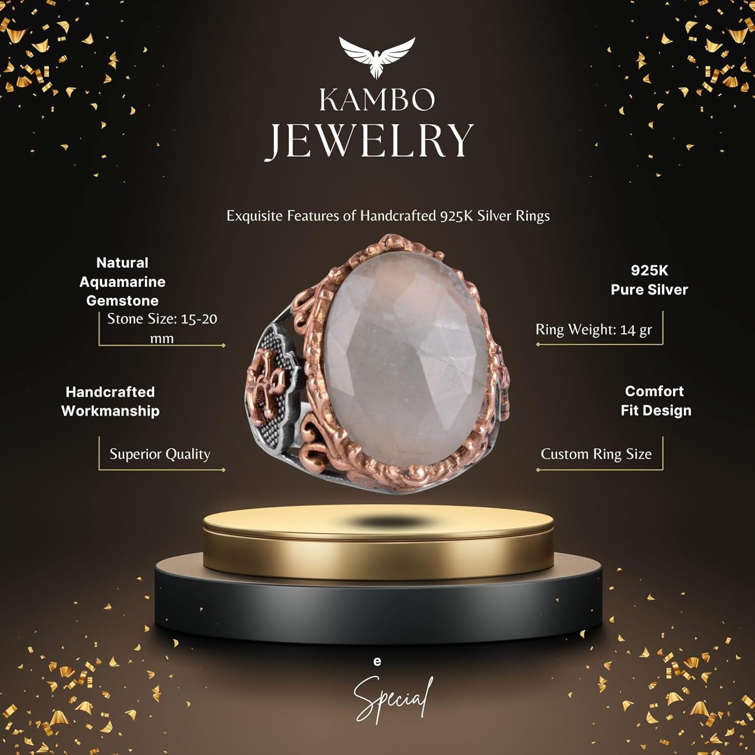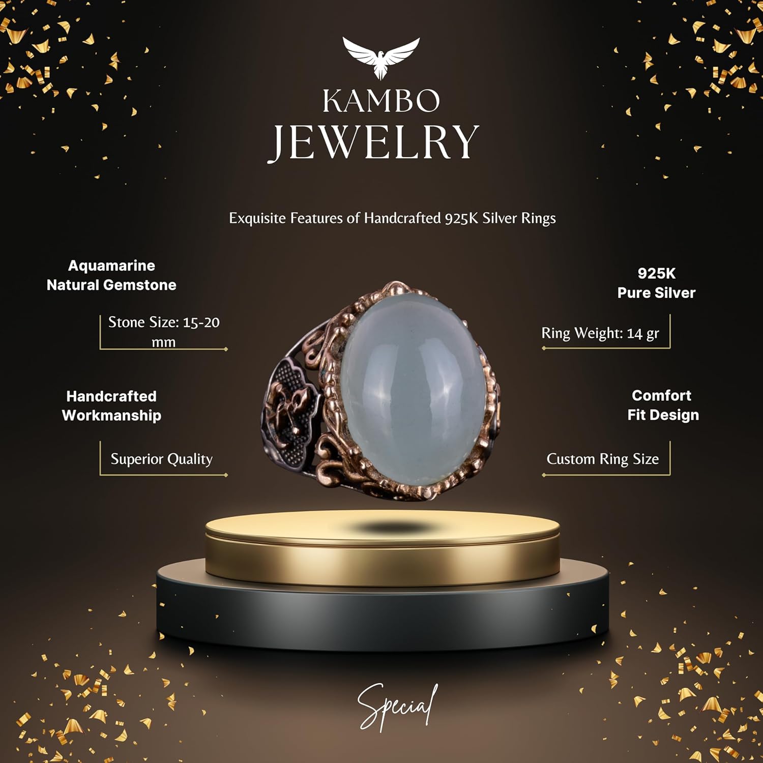 Denizci Çapa Gümüş Yüzük, Doğal Taş Yüzük, 925 Ayar Gümüş Yüzük (Akuamarin)