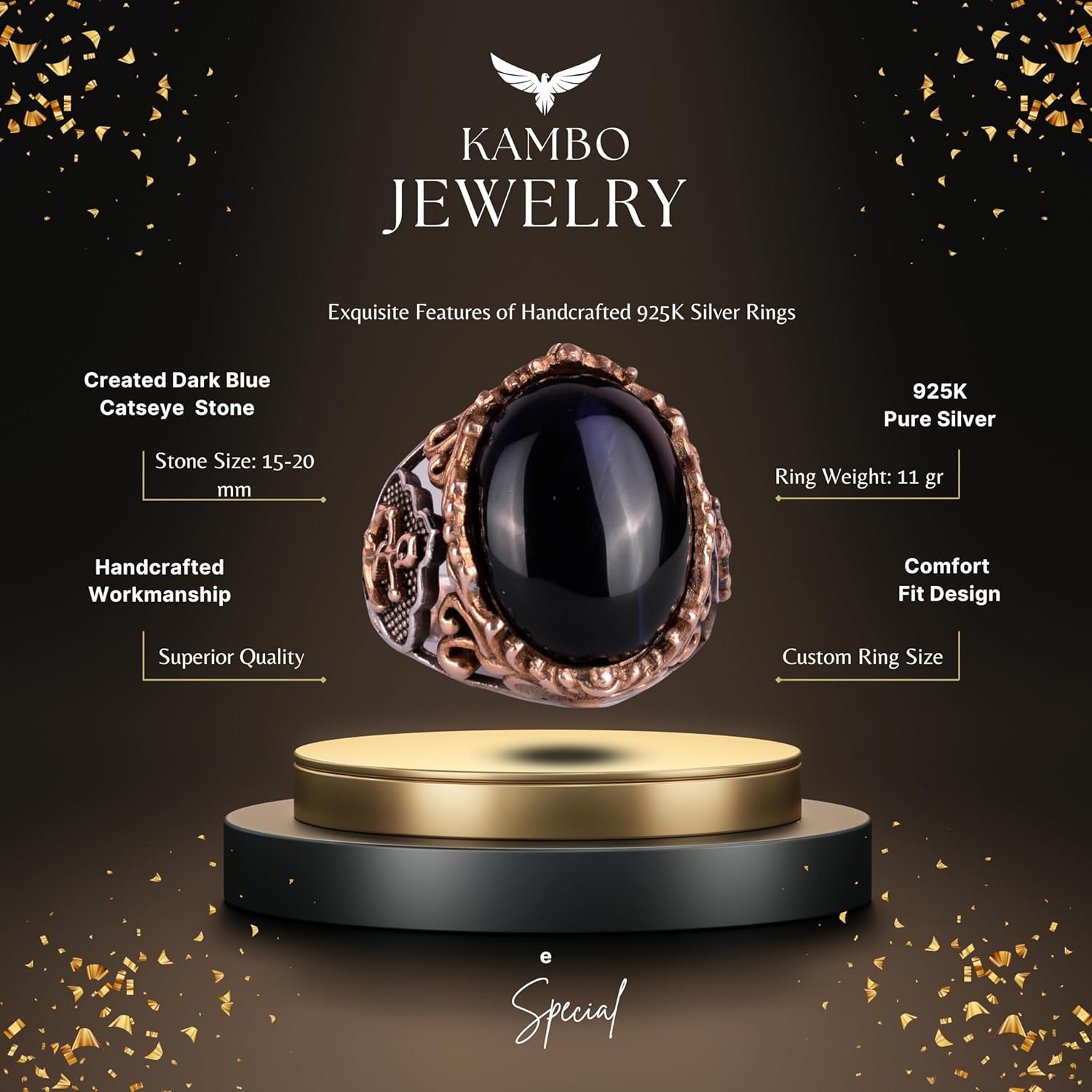 Denizci Çapa Koyu Mavi Kedi Gözü Yapay Taş Yüzük, 925 Ayar Gümüş Yapay Taş Yüzükler - Çeşitli & Farklı Koleksiyon