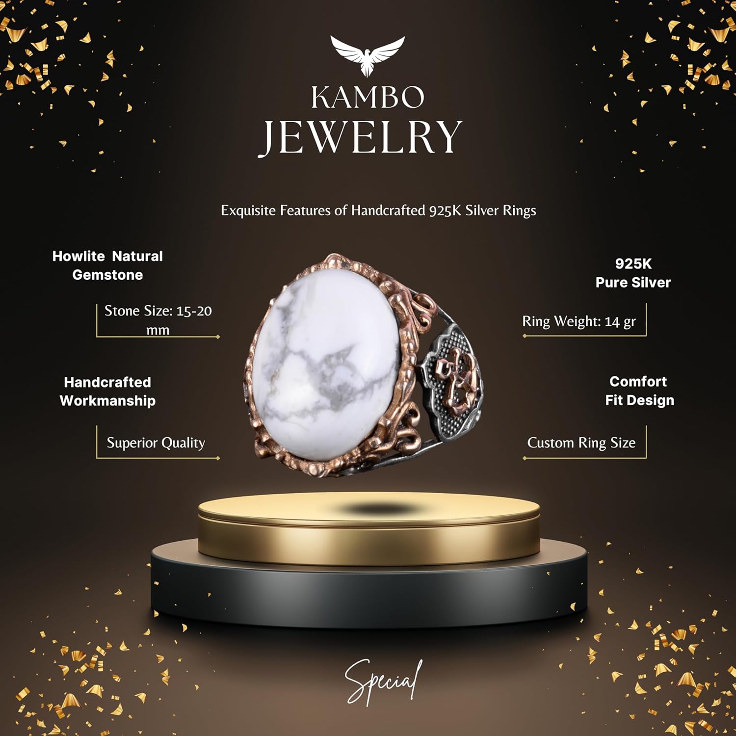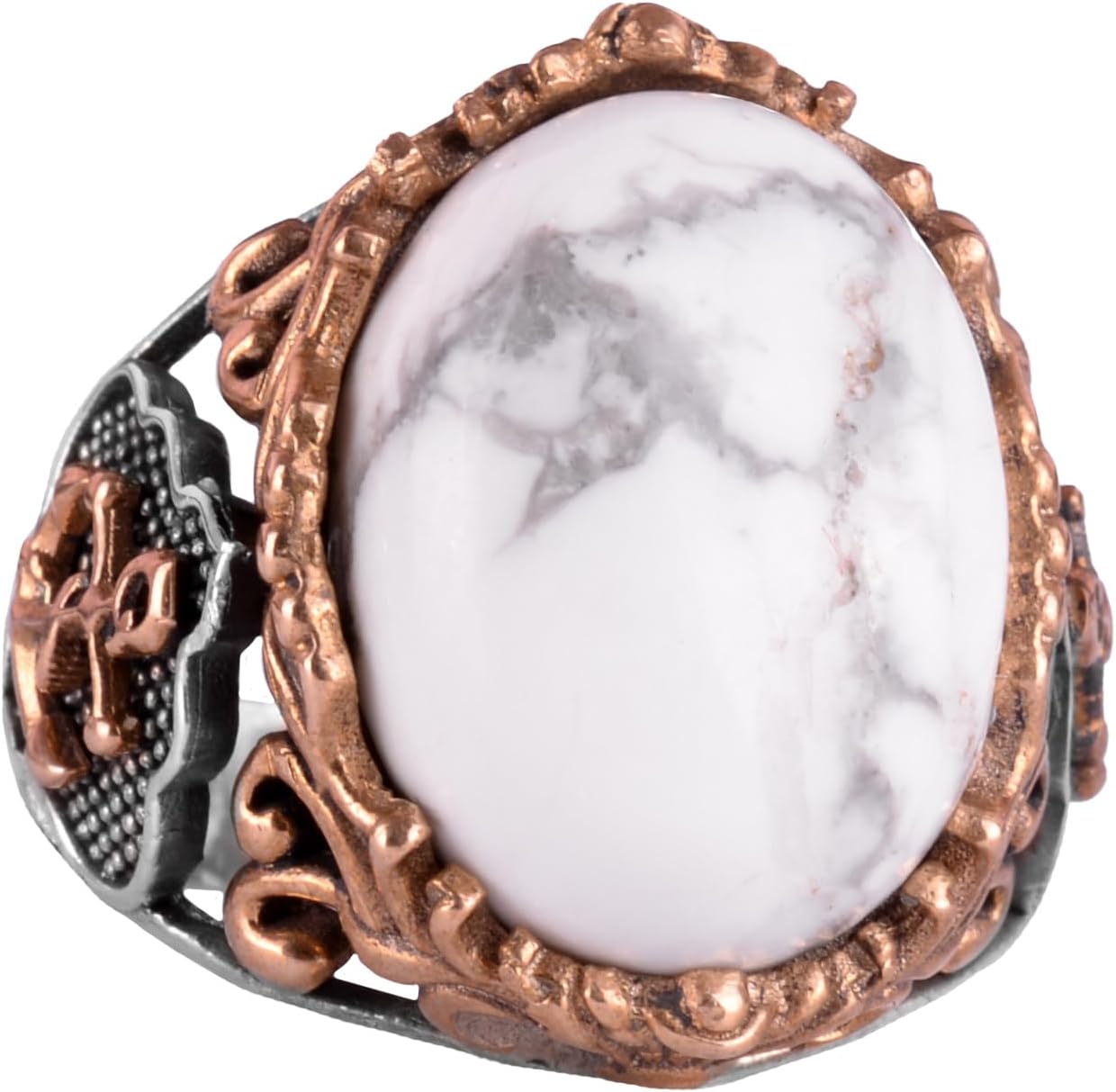 Denizci Çapa Gümüş Yüzük, Doğal Taş Yüzük, 925 Ayar Sterlin Gümüş Yüzük (Howlite)