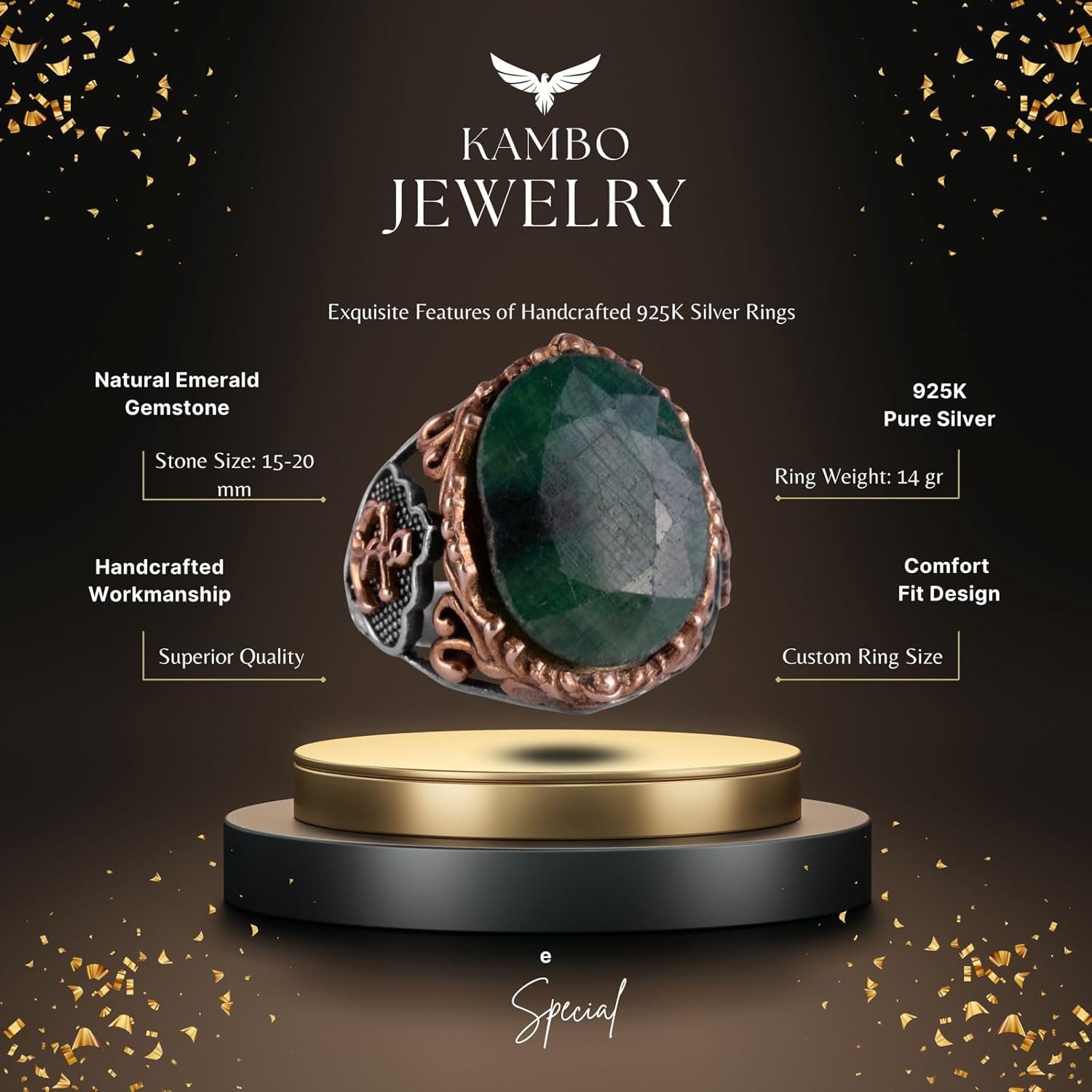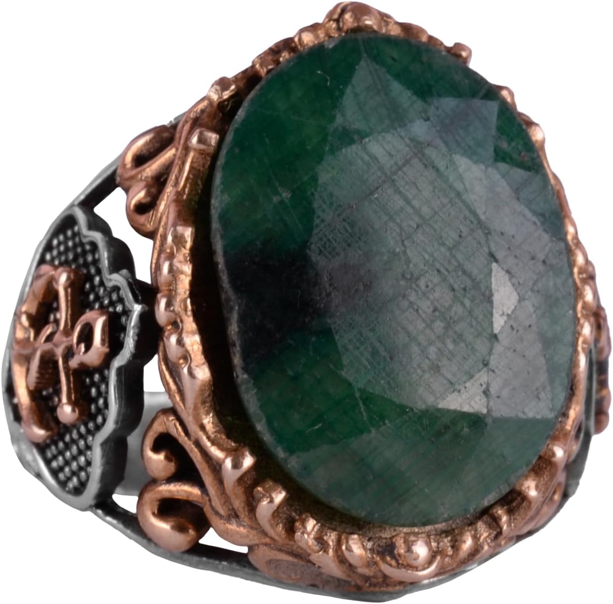 Denizci Çapa Yüzüğü, 925K Katı Gümüş Erkek Yüzüğü, El Yapımı Doğal Zümrüt Taşlı Yüzük