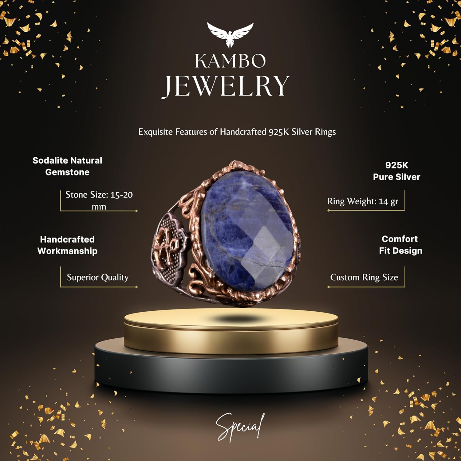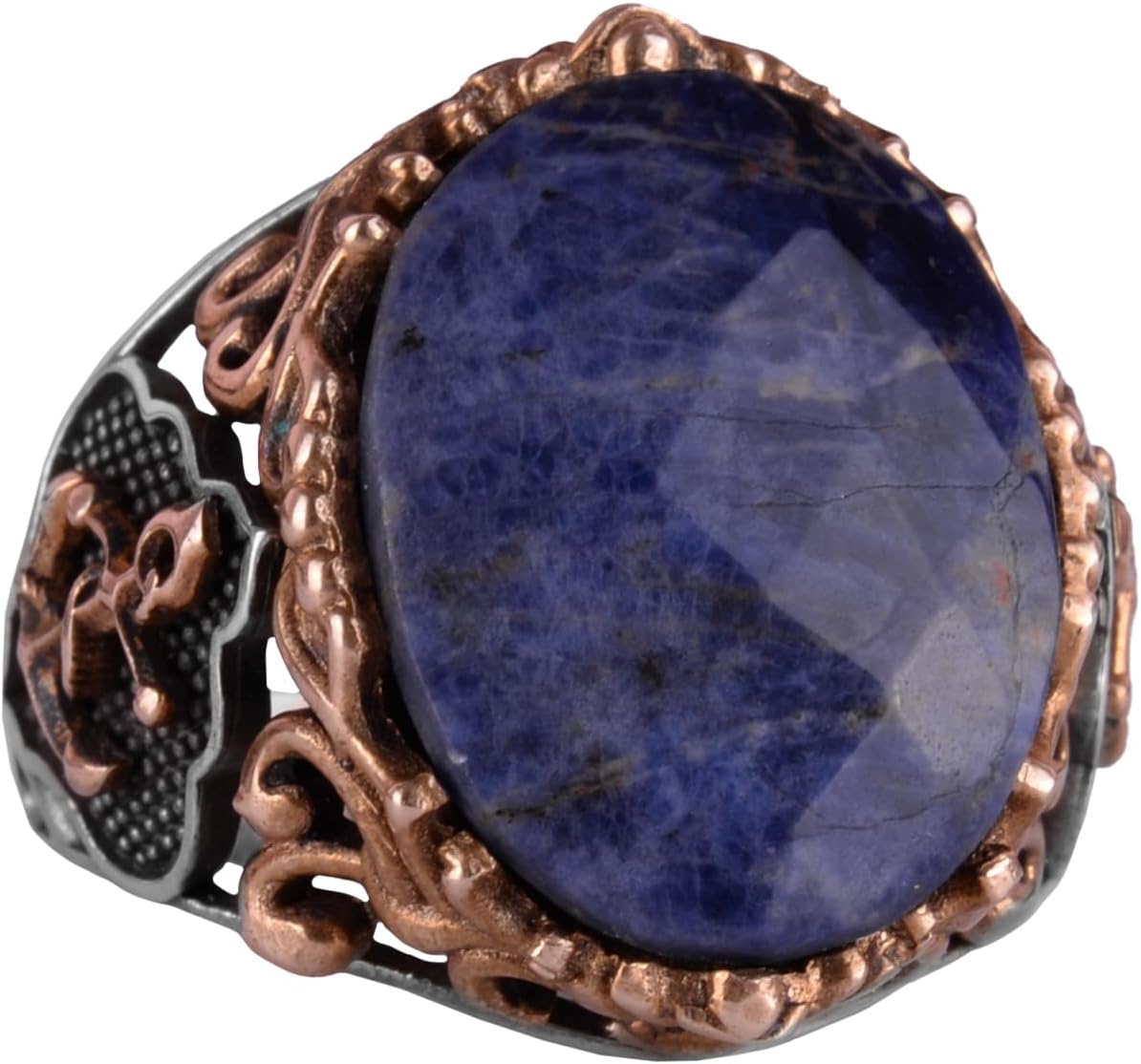 Denizci Çapa Gümüş Yüzük, Doğal Taş Yüzük, 925 Ayar Gümüş Yüzük (Sodalit)