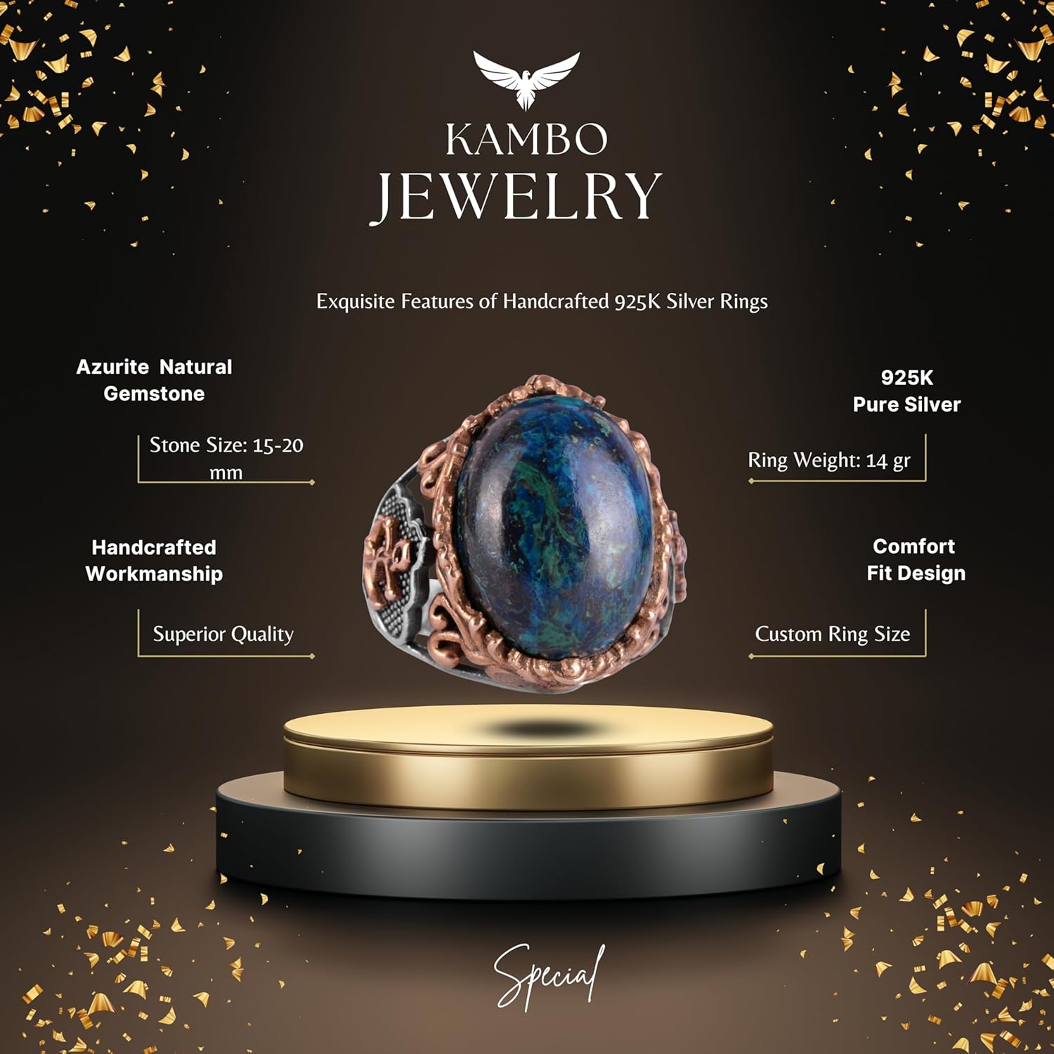 Denizci Çapa Yüzüğü, Doğal Azurit Taş Yüzüğü, 925 Ayar Sert Gümüş Erkek Yüzüğü, İçgörü ve Netlik Tasarımı