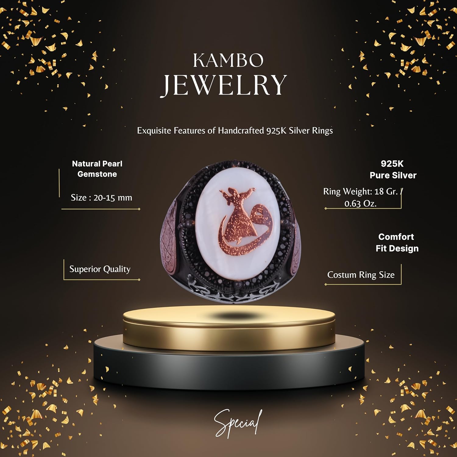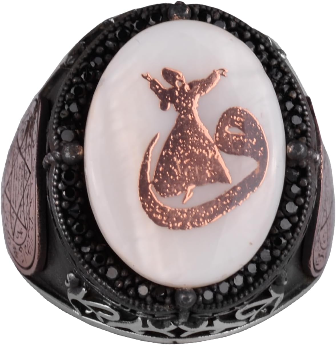 Desenli El Yapımı Yüzük - 925 Ayar Gümüş Erkek Yüzüğü - David Yıldızı Takısı (Vav ve Semazen)