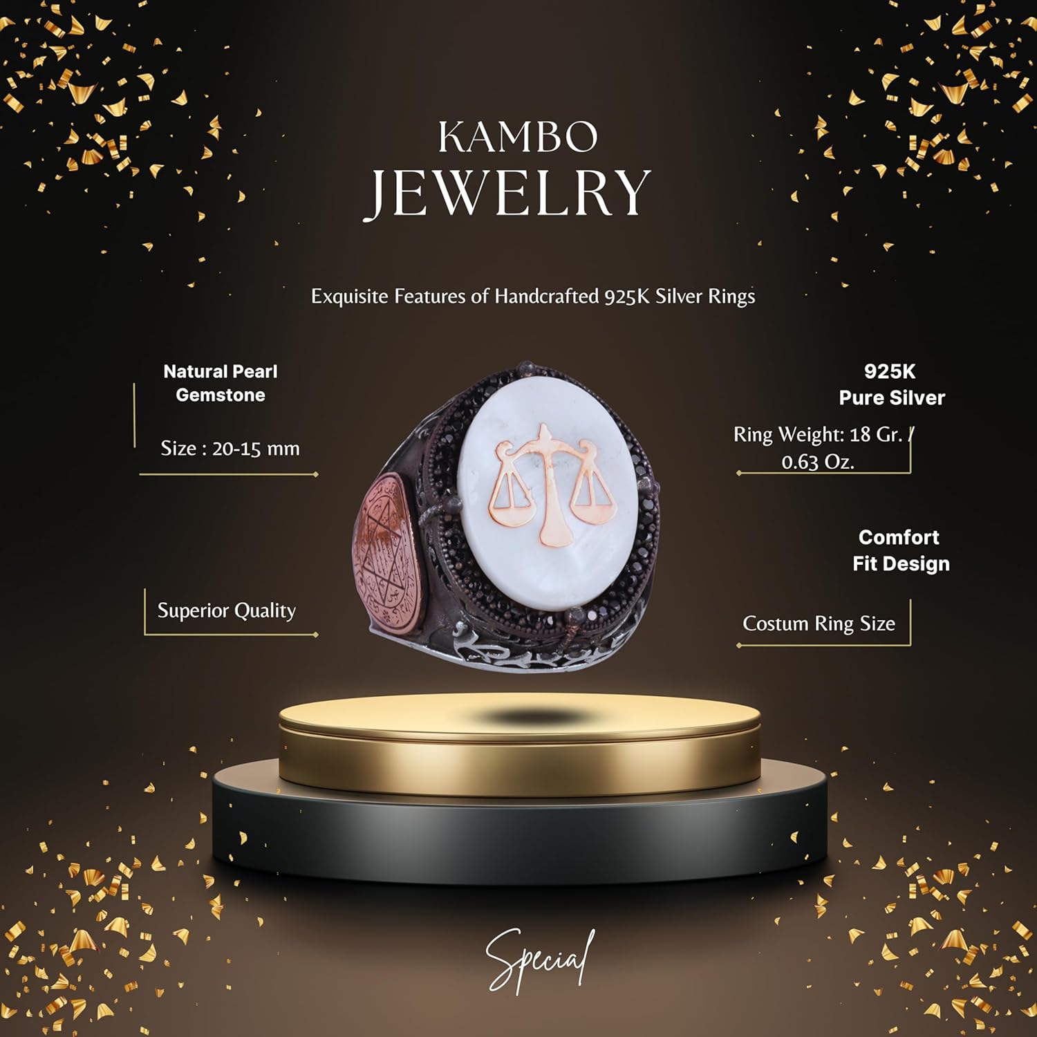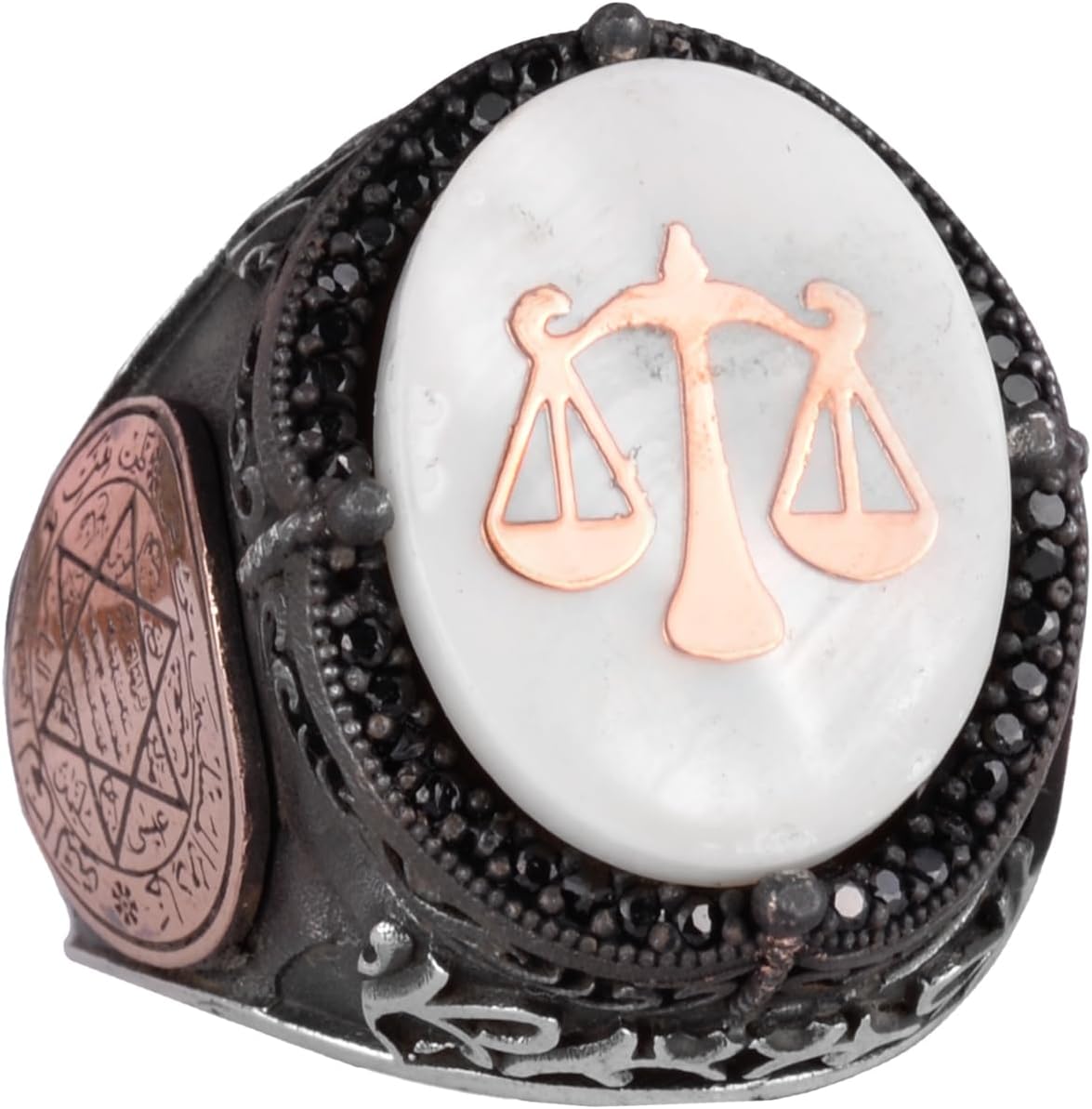 Desenli El Yapımı Yüzük - 925 Ayar Gümüş Erkek Yüzüğü - Davut Yıldızı Takı (Terazi)