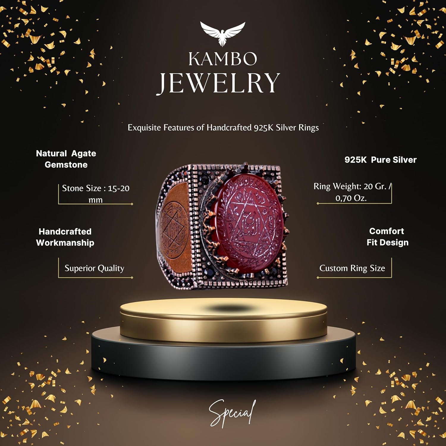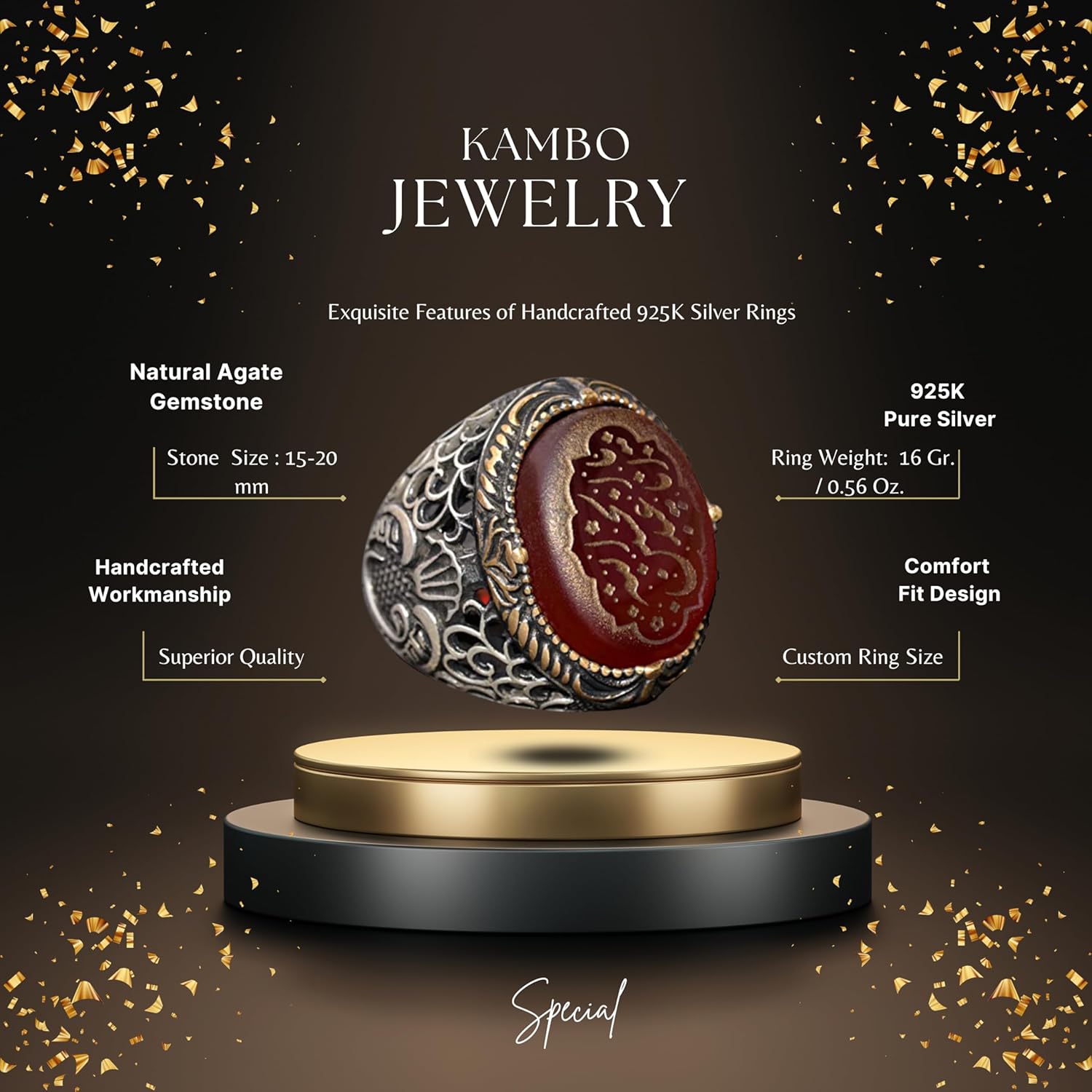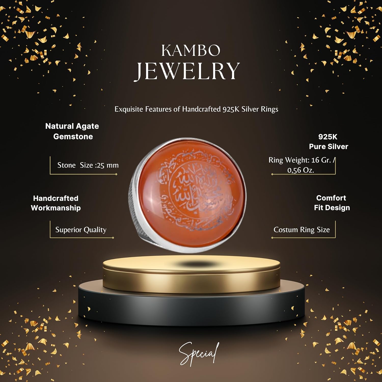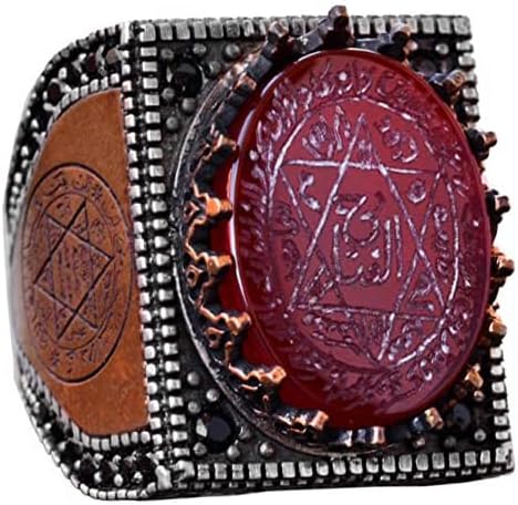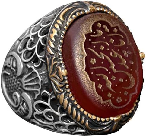 Doğal Akik Taşlı Yüzük - İslami Hediye, Sterlin Gümüş Erkek Yüzüğü