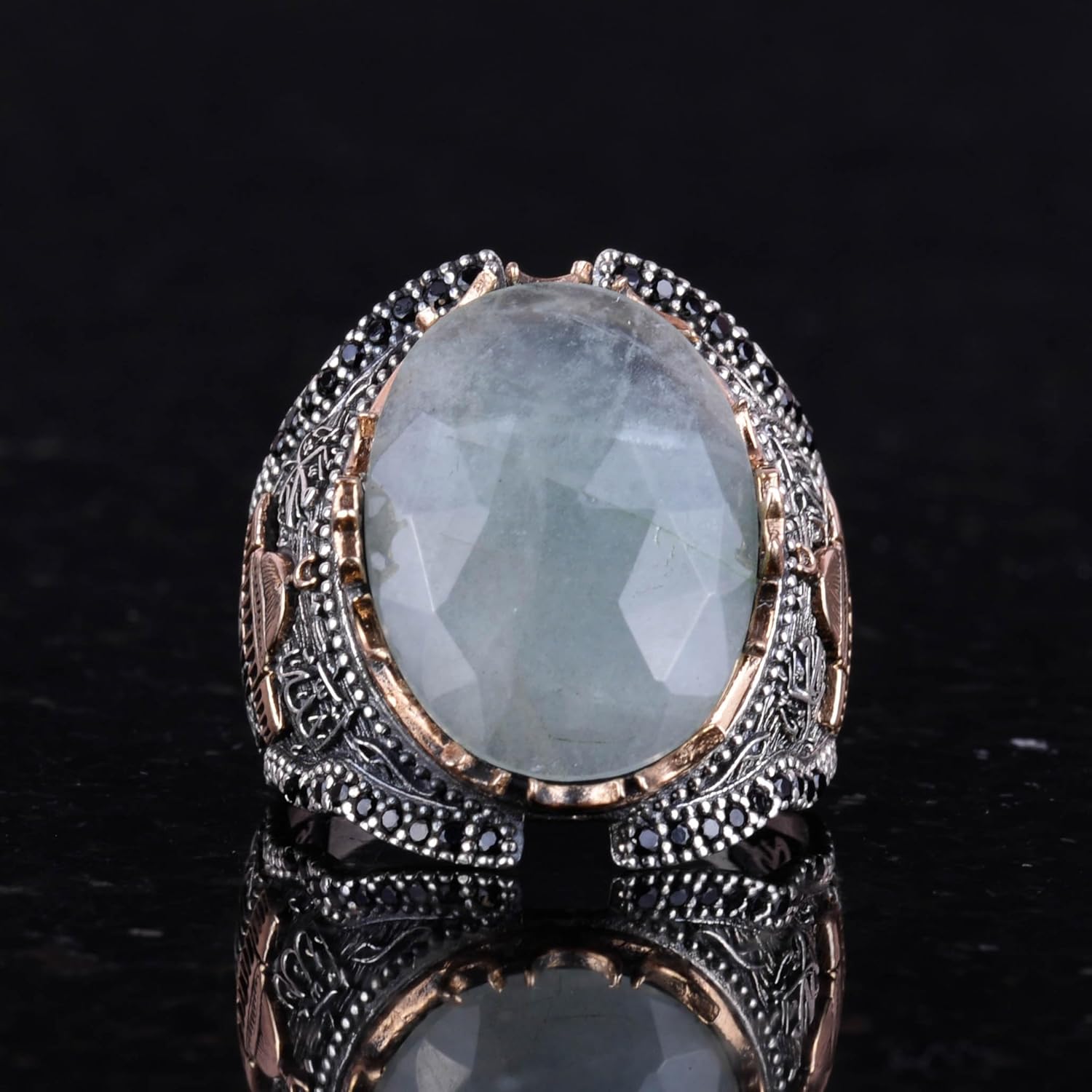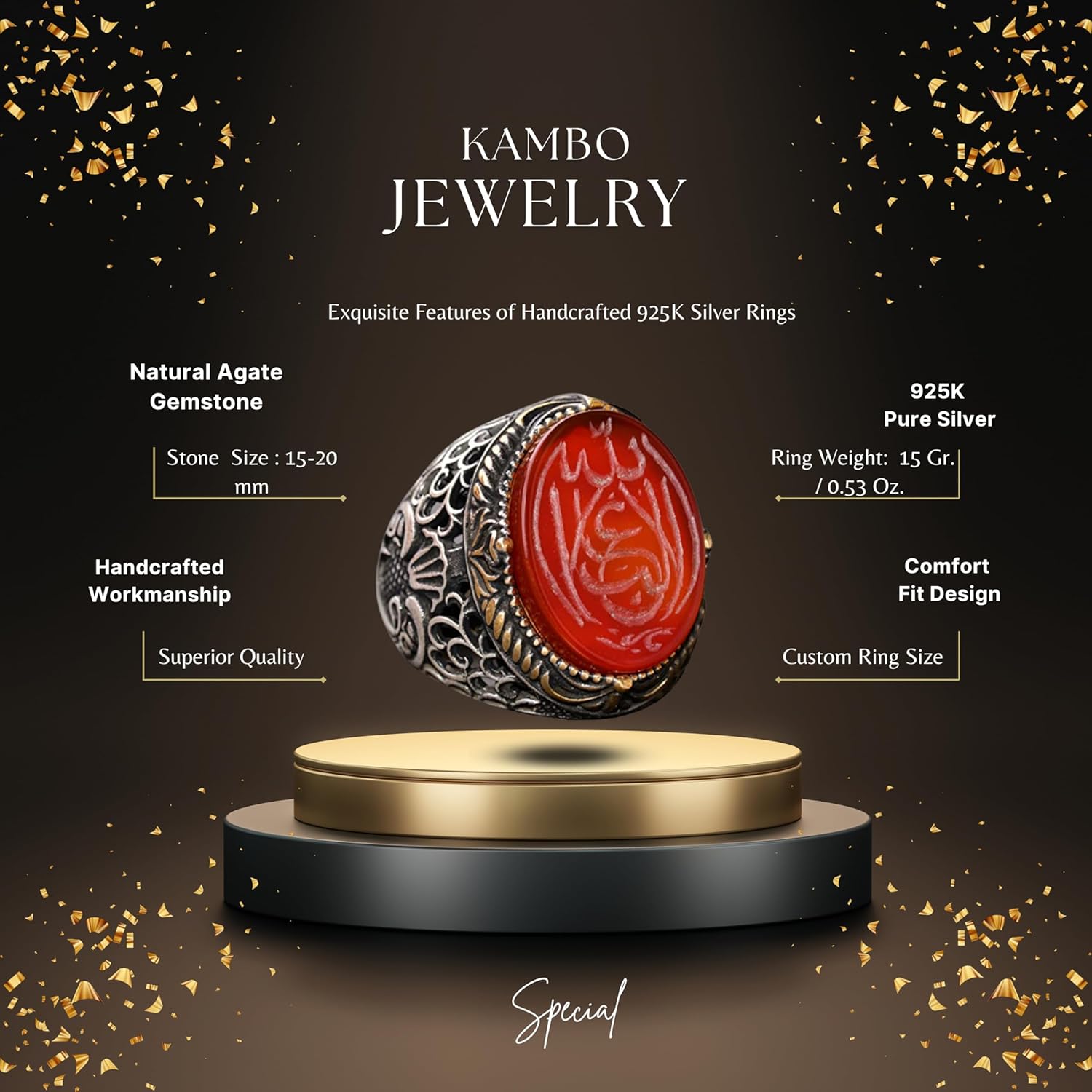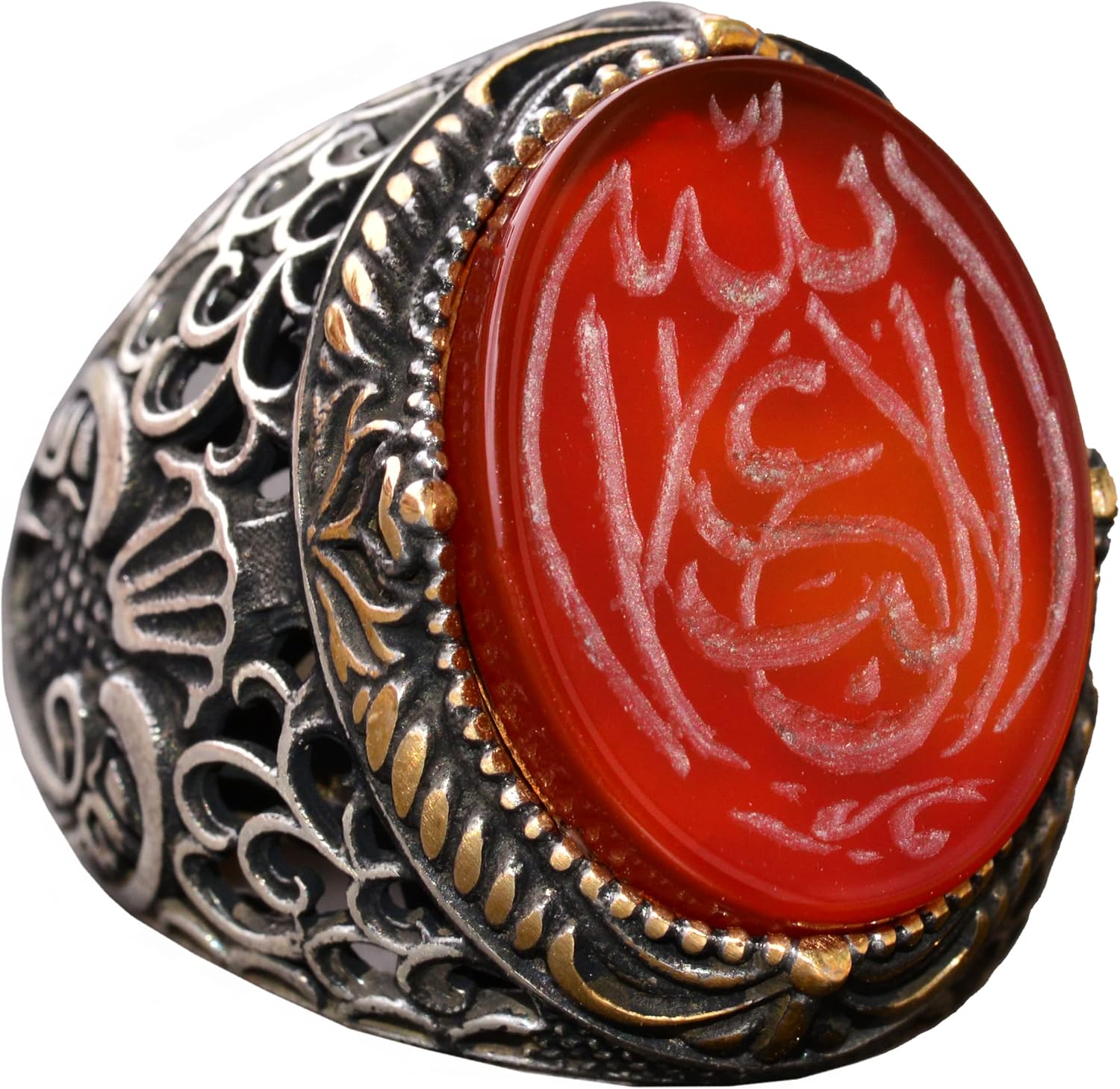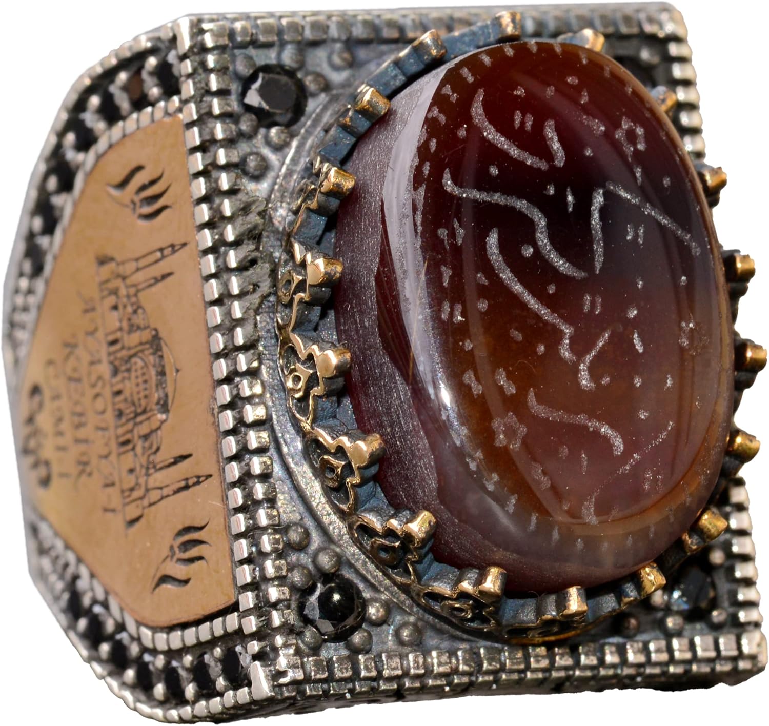 Doğal Akik Taş Yüzük - İslami Hediye, Erkek Yüzük, Ayar Gümüş