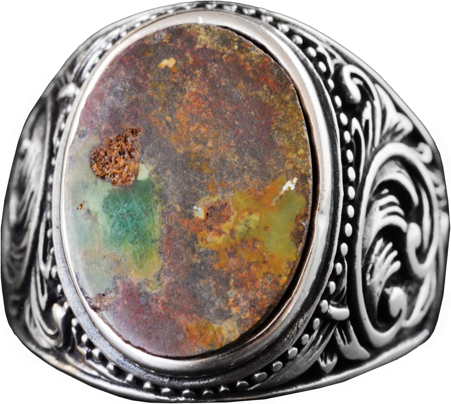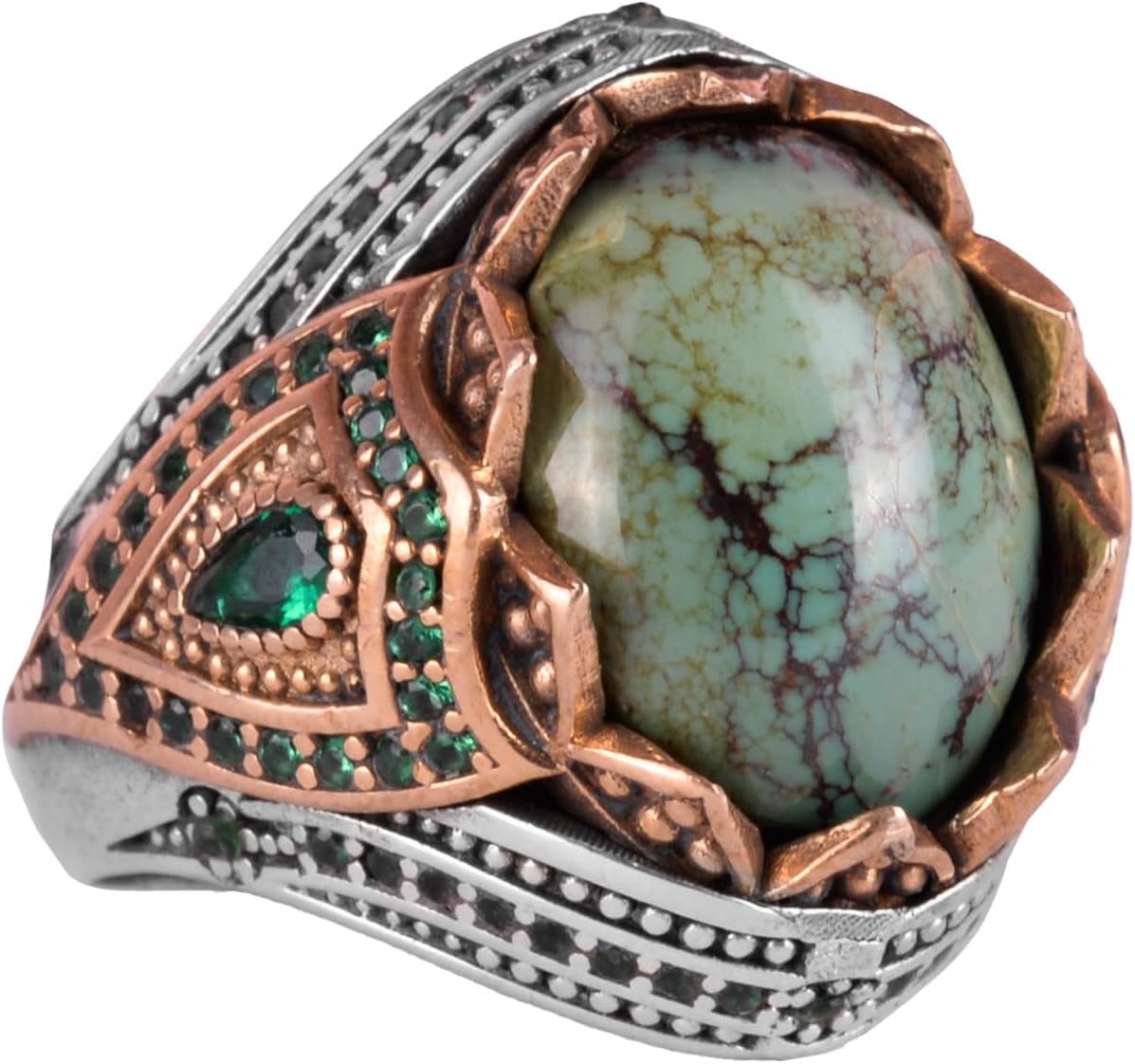 Doğal Arizona Yeşil Turkuaz Taş Yüzük, Vintage Tasarım - 925 Ayar Gümüş Erkek Yüzüğü, El Yapımı