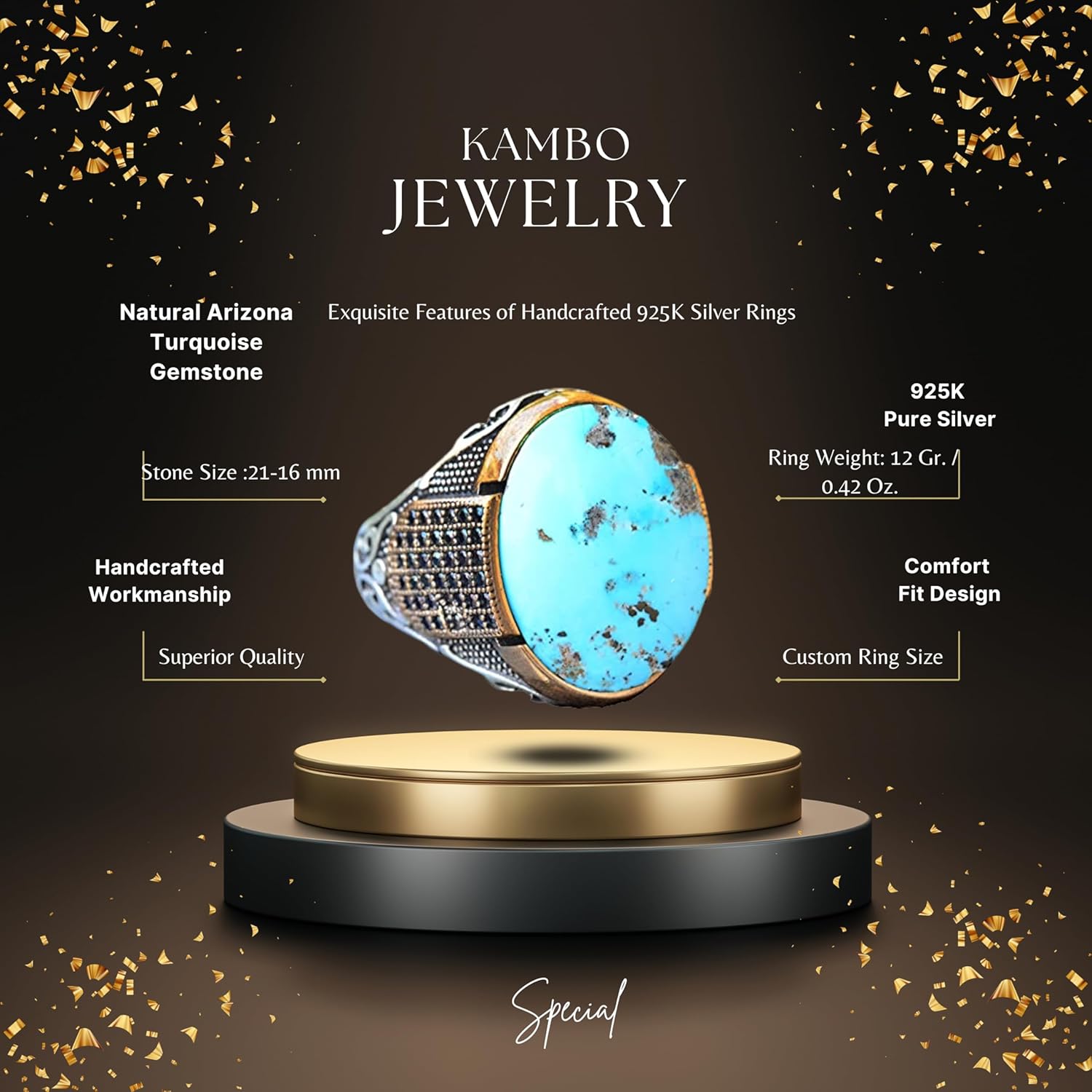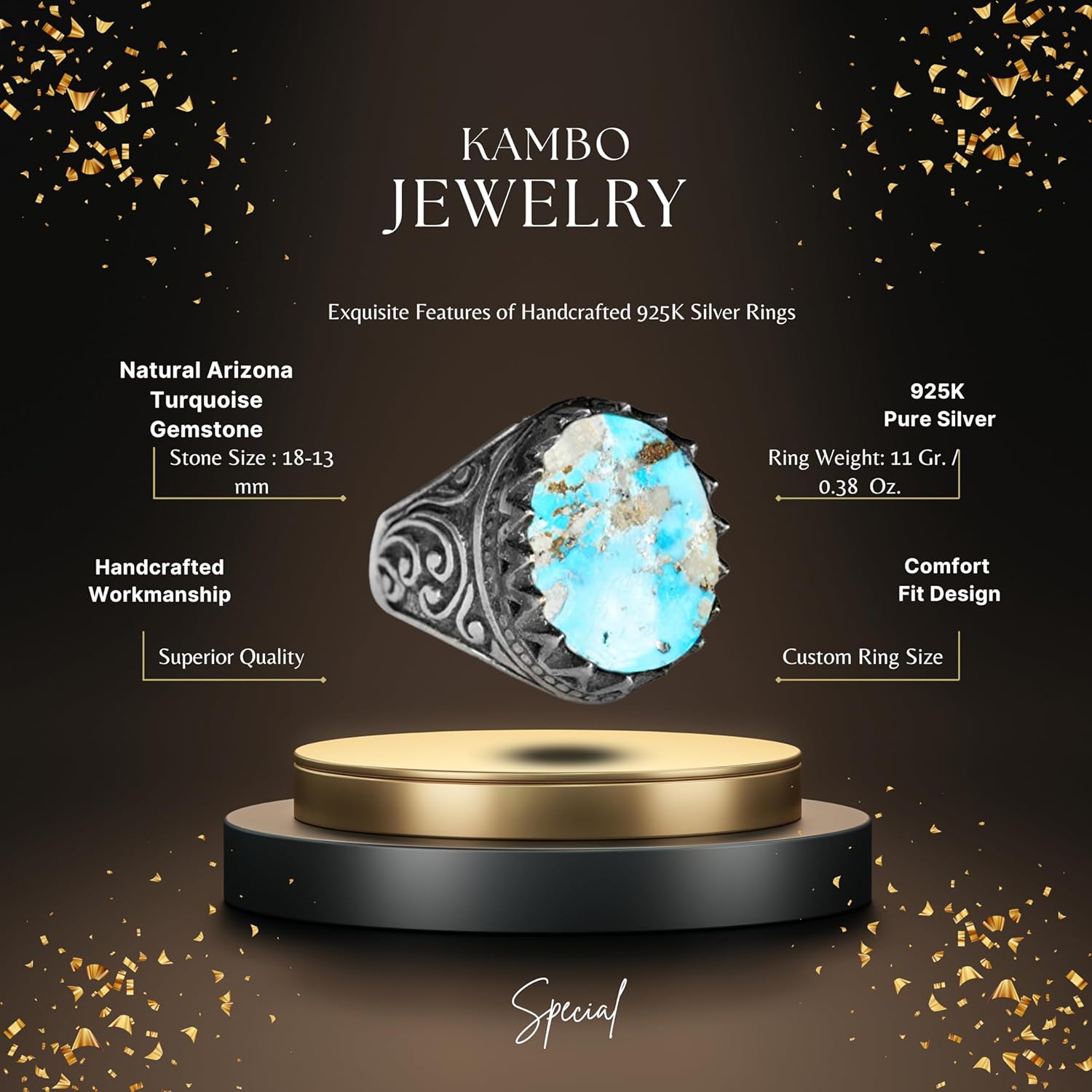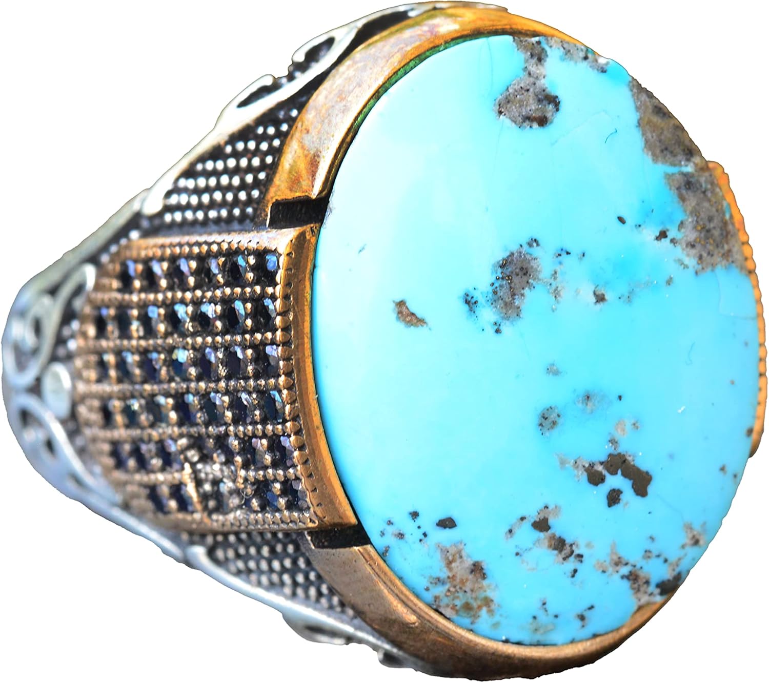 Doğal Arizona Turkuaz Taşı, Sterlin Gümüş Erkek Yüzük