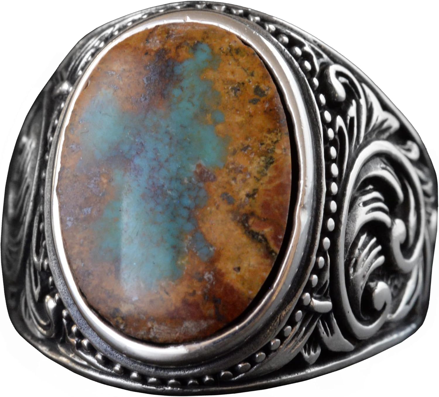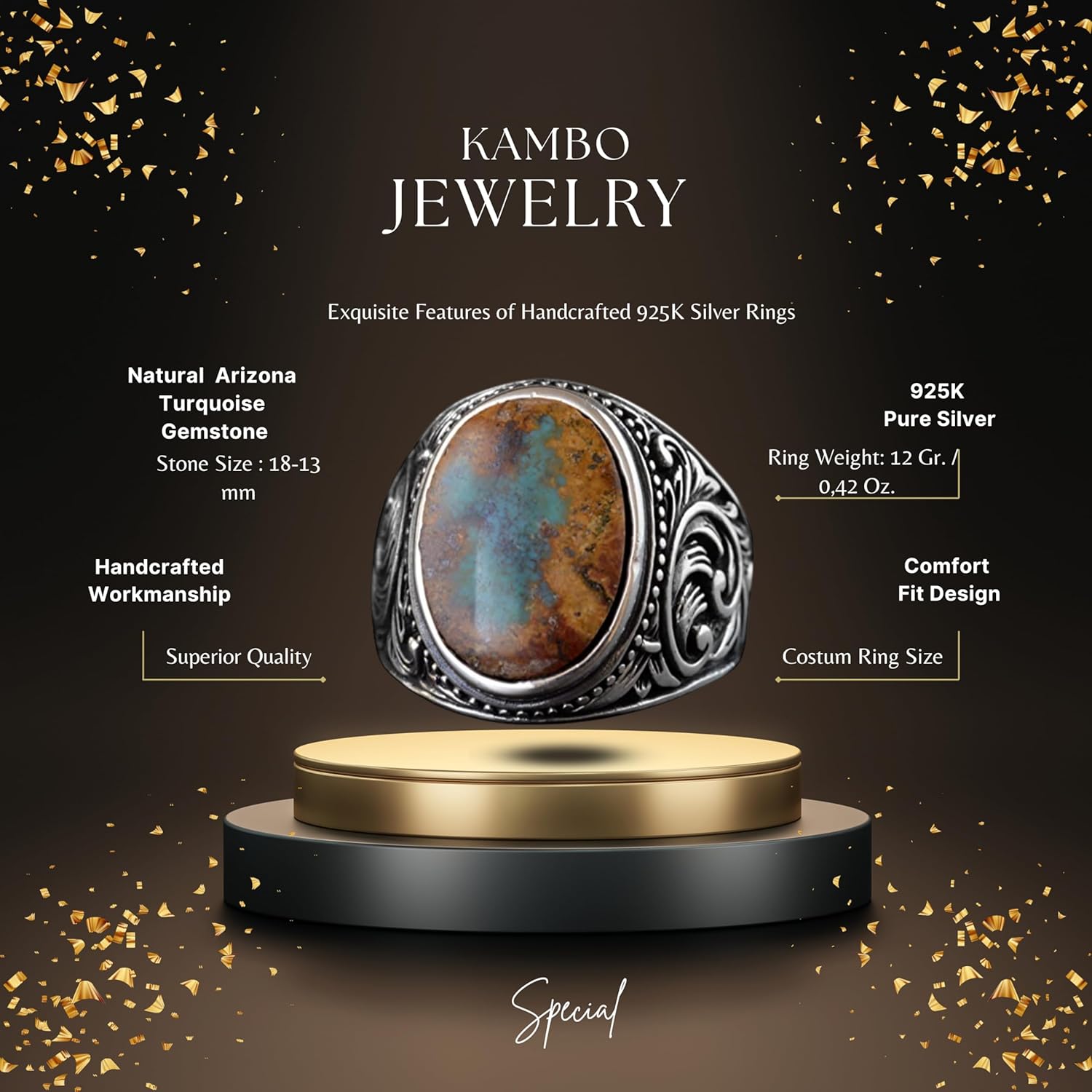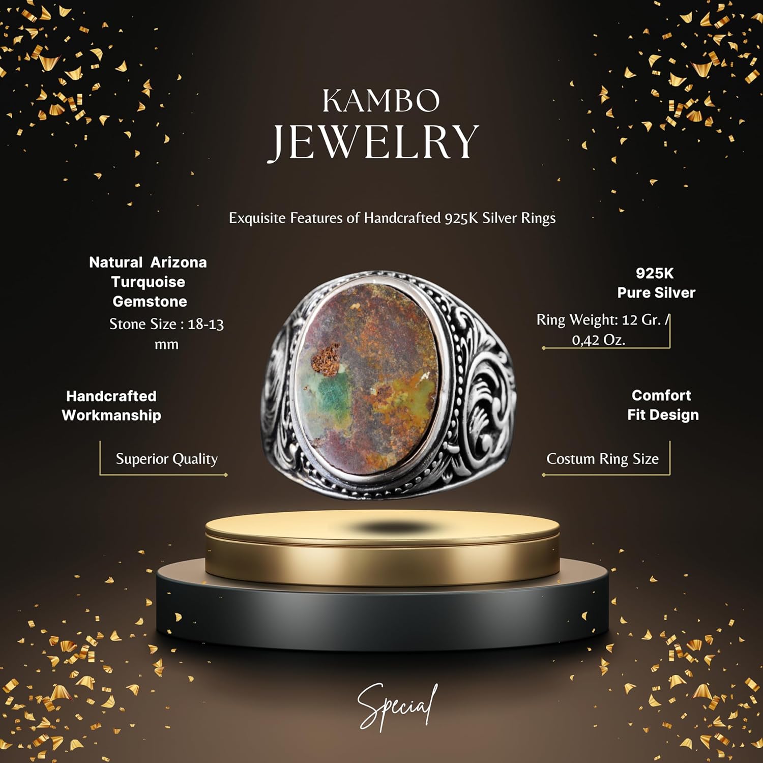 Doğal Arizona Yeşil Turkuaz Taş Yüzük, Vintage Tasarım - 925 Ayar Gümüş Erkek Yüzüğü, El Yapımı Şıklık (Model-2)