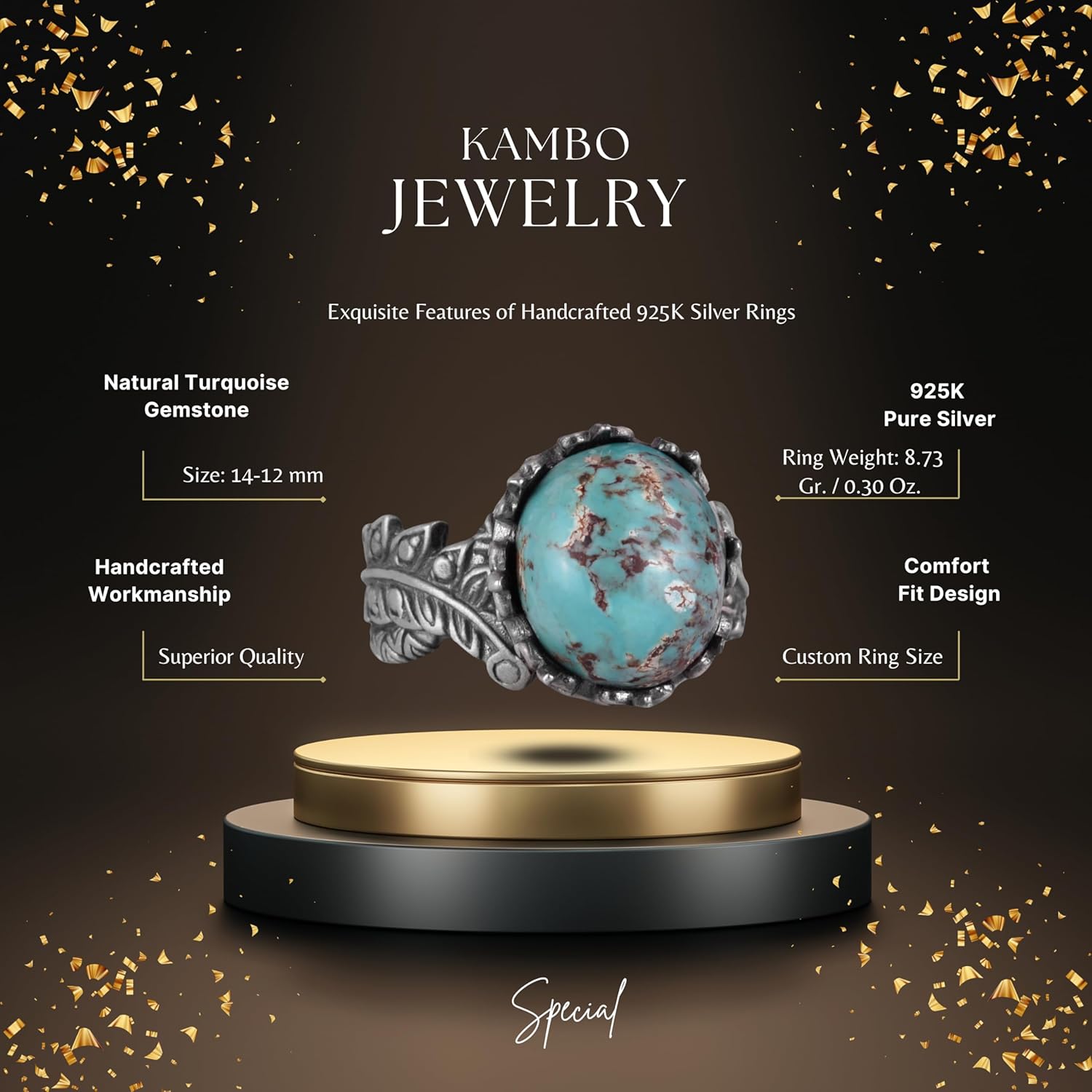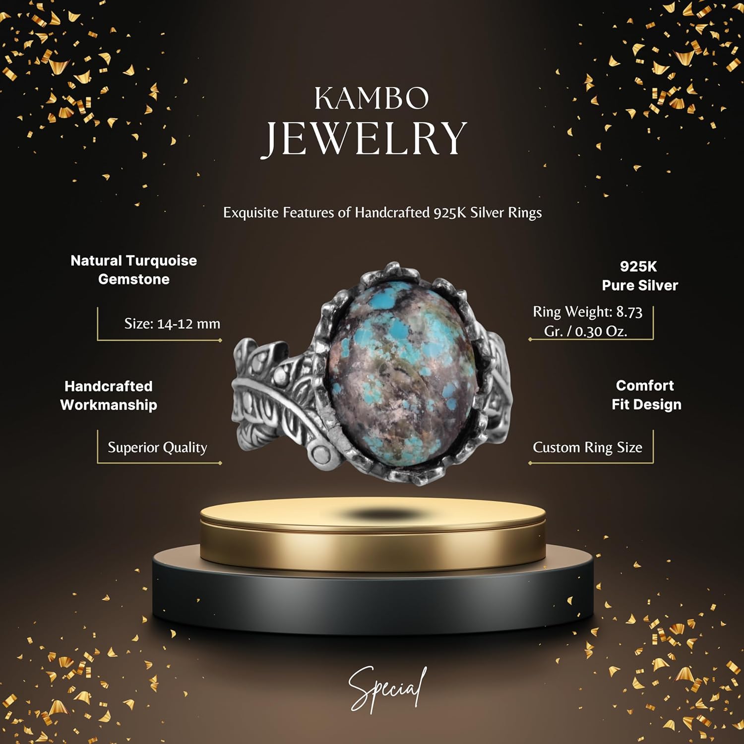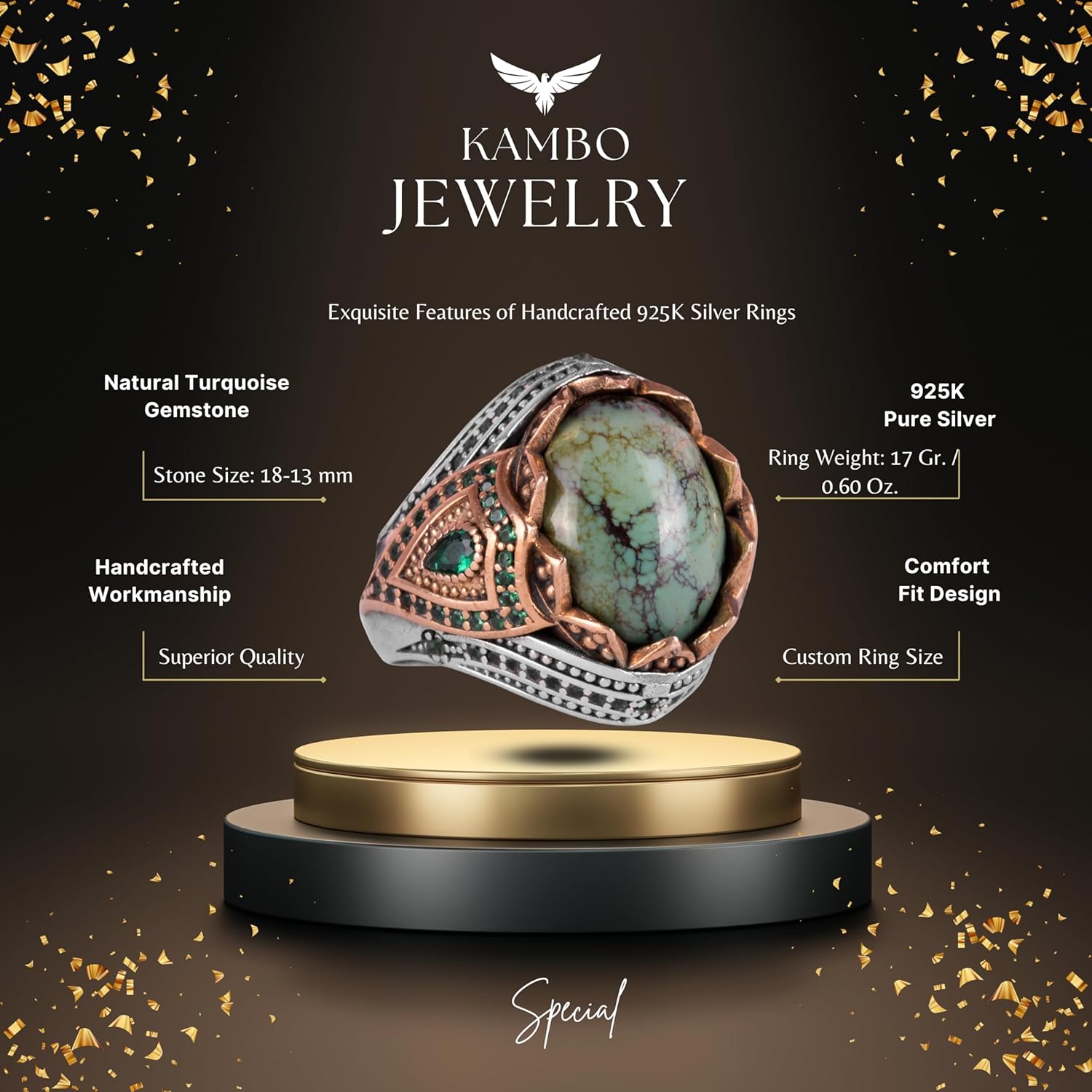 Doğal Arizona Yeşil Turkuaz Taş Yüzük, Vintage Tasarım - 925 Ayar Gümüş Erkek Yüzüğü, El Yapımı Şıklık (Model-2)